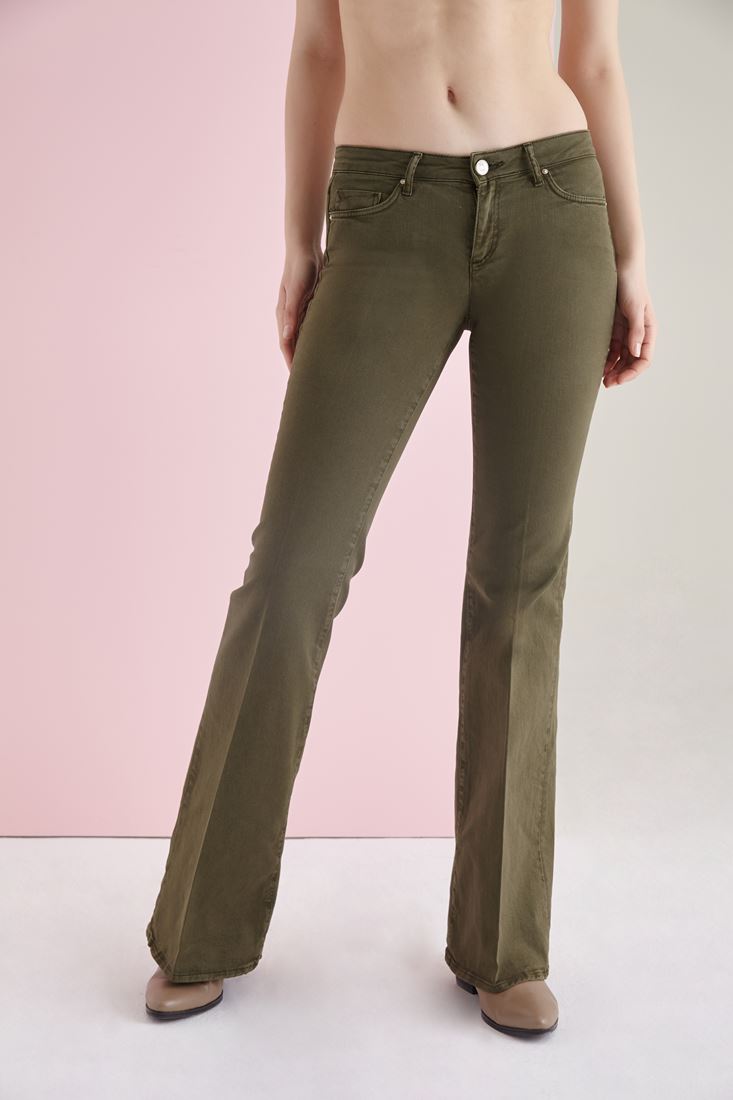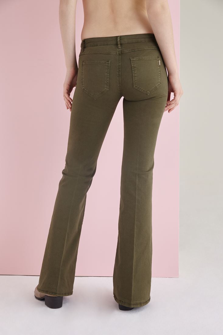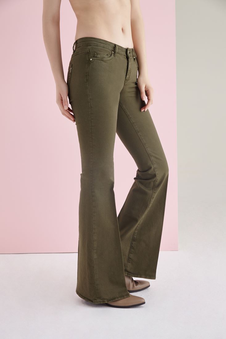 • Bayan Yeşil İspanyol Paça Düşük Bel Pantolon