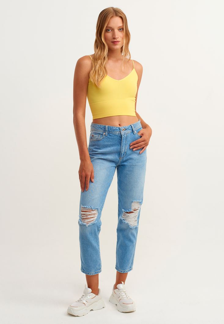 • Bayan Sarı Jakar Detaylı Dikişsiz Atlet