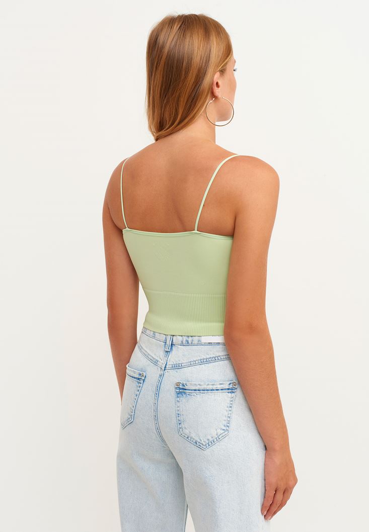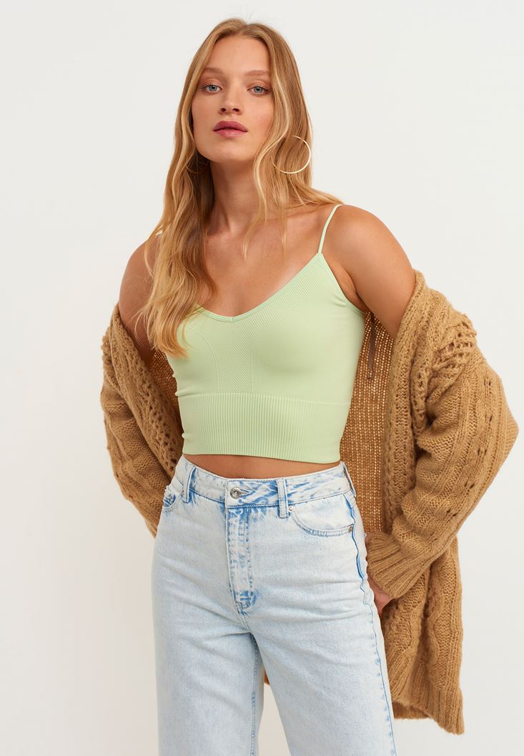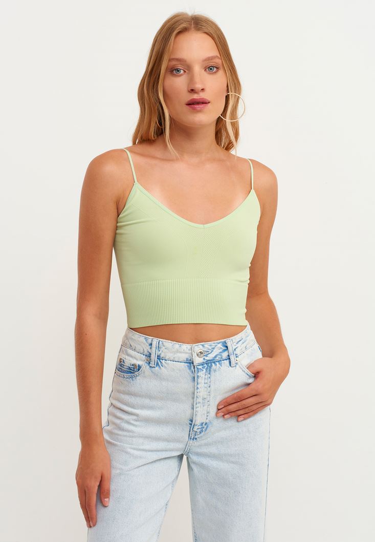 Seamless teknolojisi ile üretilen özel dikişsiz doku, ince askılı, ekstra esnek kalıp, jakar detaylı, crop kesim, bedeni saran rahat form.