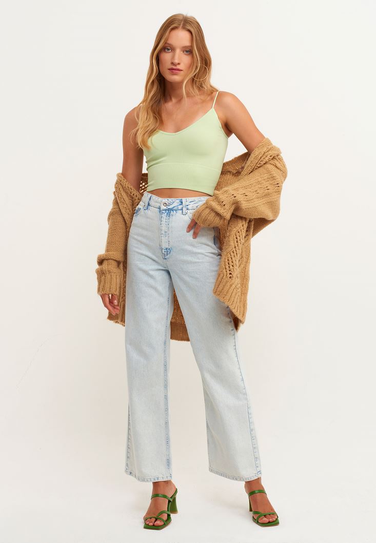 Yeşil Jakar Detaylı Dikişsiz Atlet