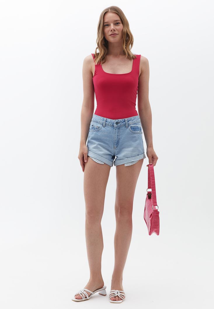 Kare Yaka Atlet ve Pamuklu Şort Kombini