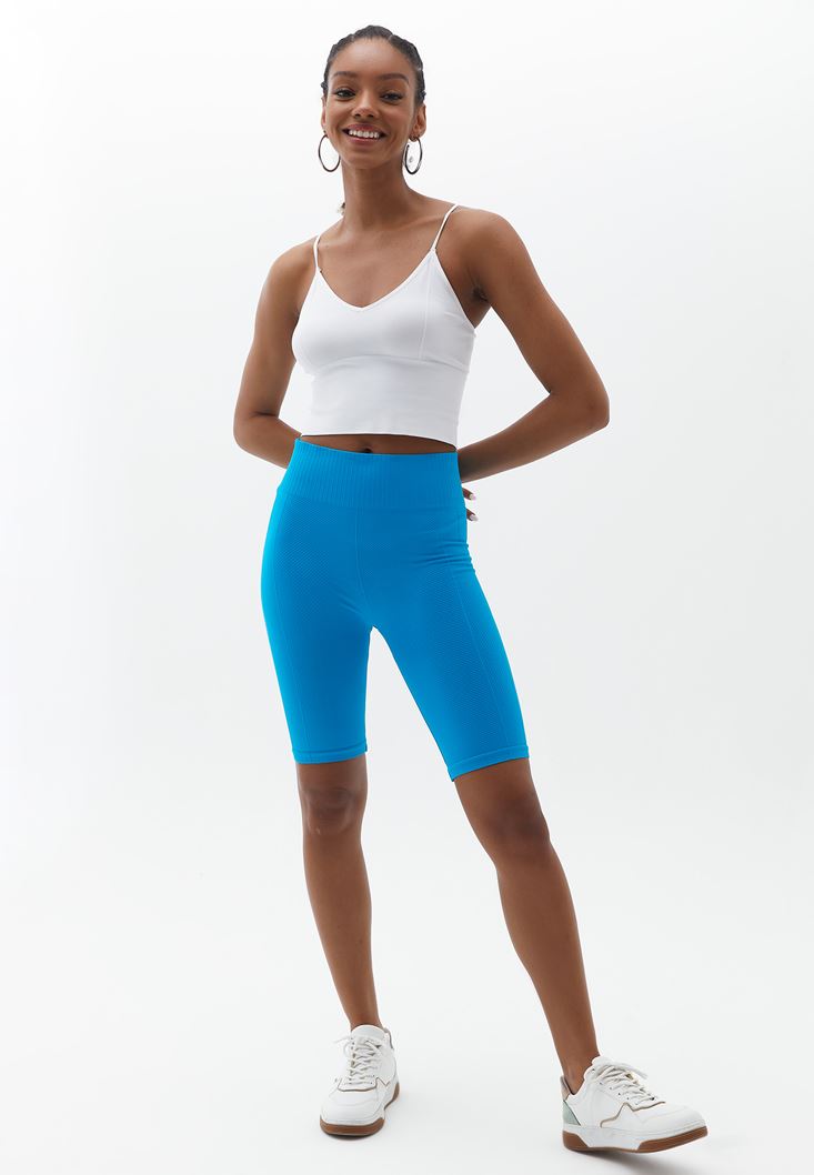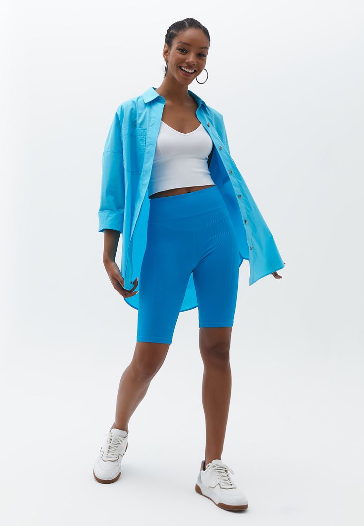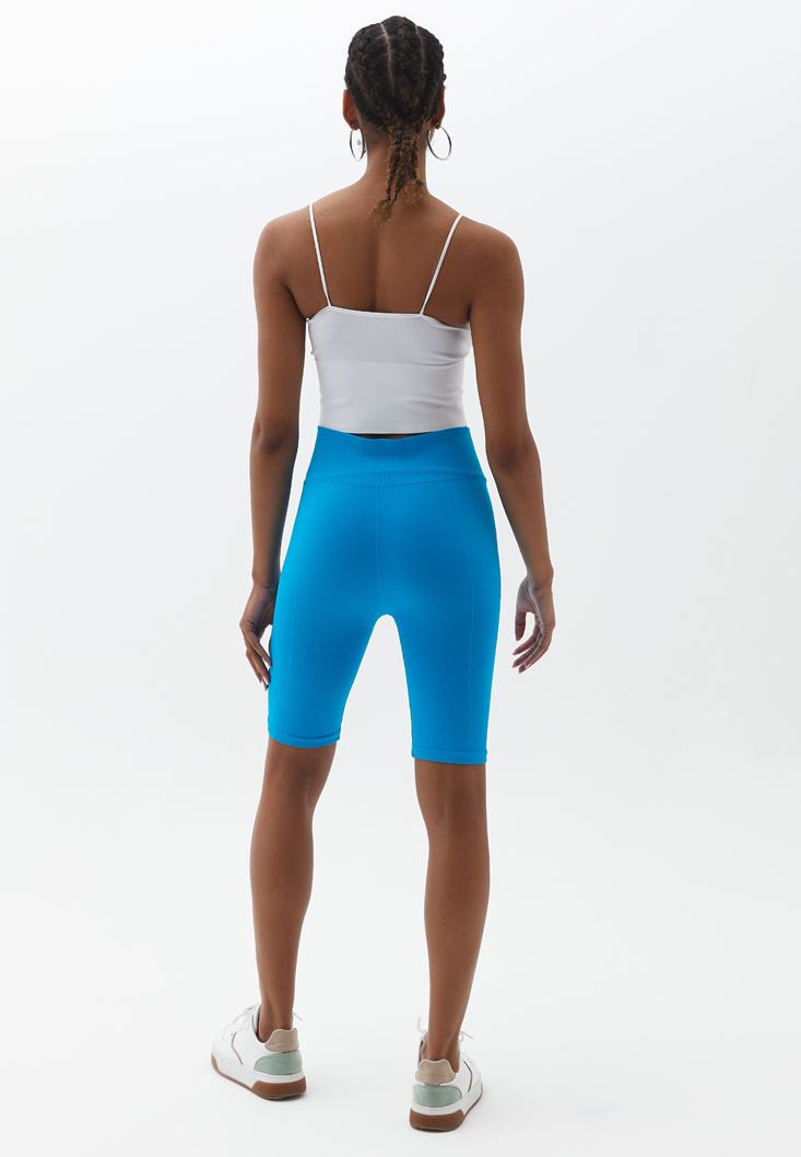 Mavi Jakarlı Dikişsiz Biker Tayt
