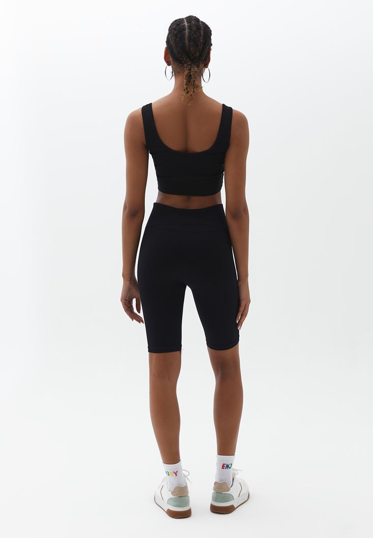 Siyah Jakarlı Dikişsiz Biker Tayt