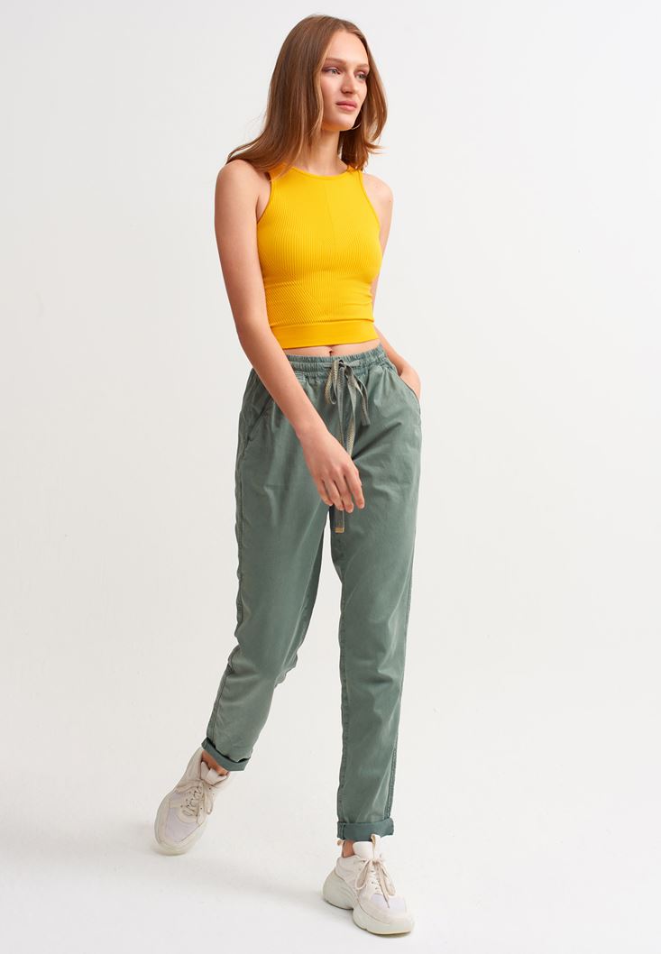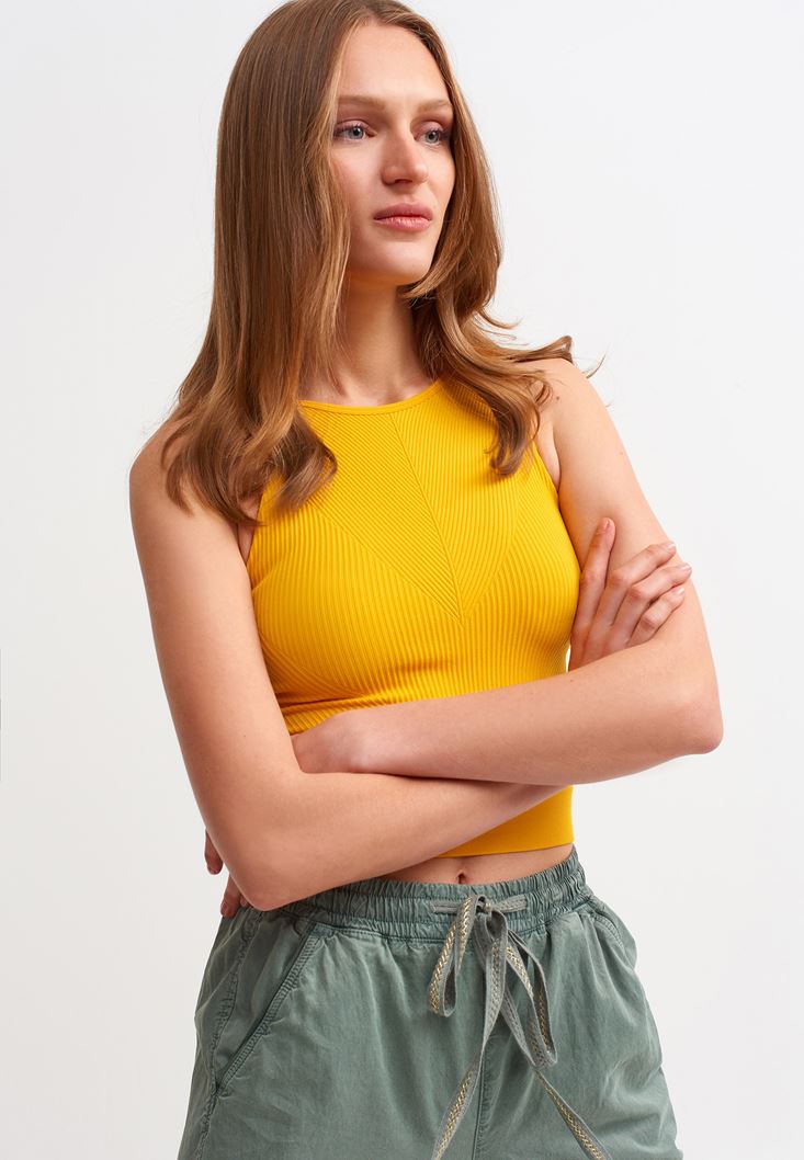 • Bayan Sarı Jakarlı Dikişsiz Crop Atlet