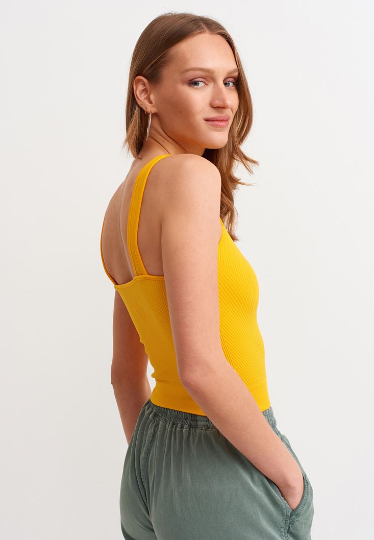 Sarı Jakarlı Dikişsiz Crop Atlet