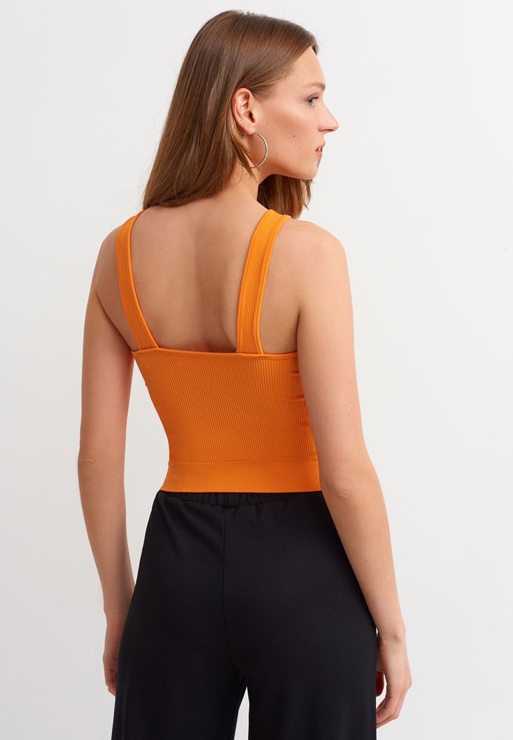 Turuncu Jakarlı Dikişsiz Crop Atlet