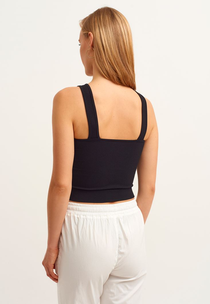 Siyah Jakarlı Dikişsiz Crop Top