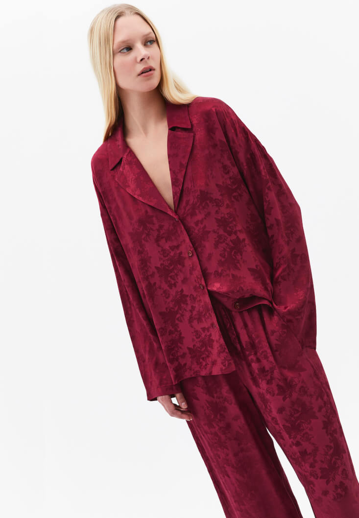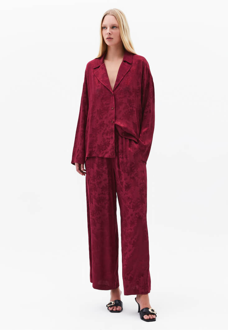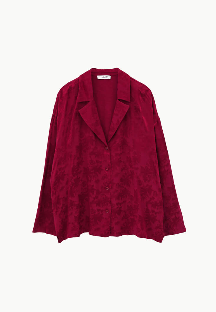 • Bayan Kırmızı Jakarlı Oversize Gömlek