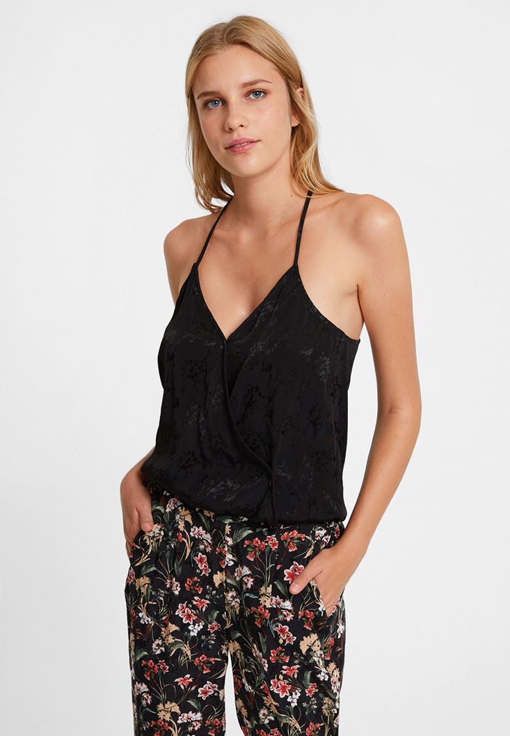 • Bayan Siyah Jakarlı V Yaka Bluz
