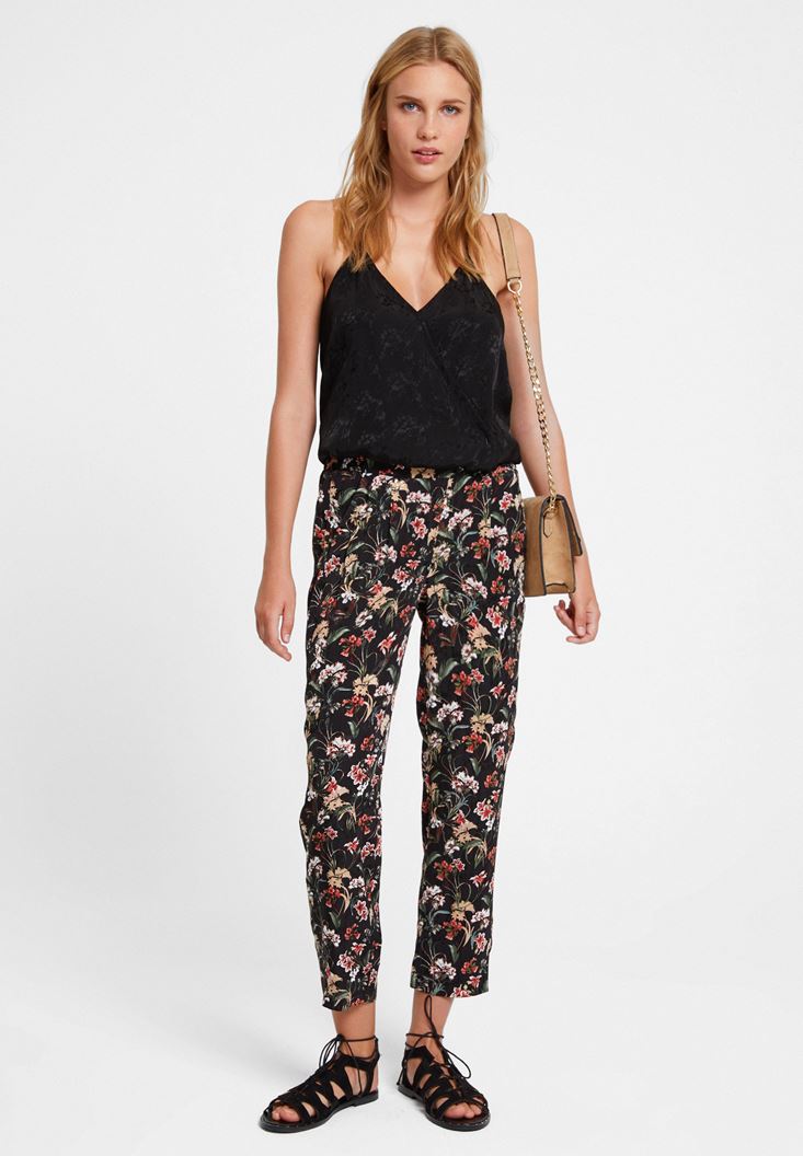 Jakarli V Yaka Bluz modeli genis V yaka kesimi ile zarif bir boyun dekoltesi ortaya çikarirken ayni zamanda birbirinden farkli tarzlara sahip boyun aksesuarlari kullanarak tarzinizi dilediginiz gibi yansitmaniza olanak sagliyor. Ince askili tasarimin zarif sirt dekoltesi birlesen askilarin baglandigi üçgen kumas ile hos bir görünüm sunuyor. Sadelikten gelen zarif bir siklik elde etmek isteyenlerin rahatlikla tercih edecegi parçalardan birisi olan bluz modeli sahip oldugu viskon dokusuyla da kullanim konforunu ön plana çikariyor. Viskon dokunun nefes alan yapisi ve yüksek nem emicilik özelligi ile hareket özgürlügü sunan tasarim, günün her saati için kombinleyebileceginiz kurtarici OXXO bluz modelleri arasinda yer aliyor.