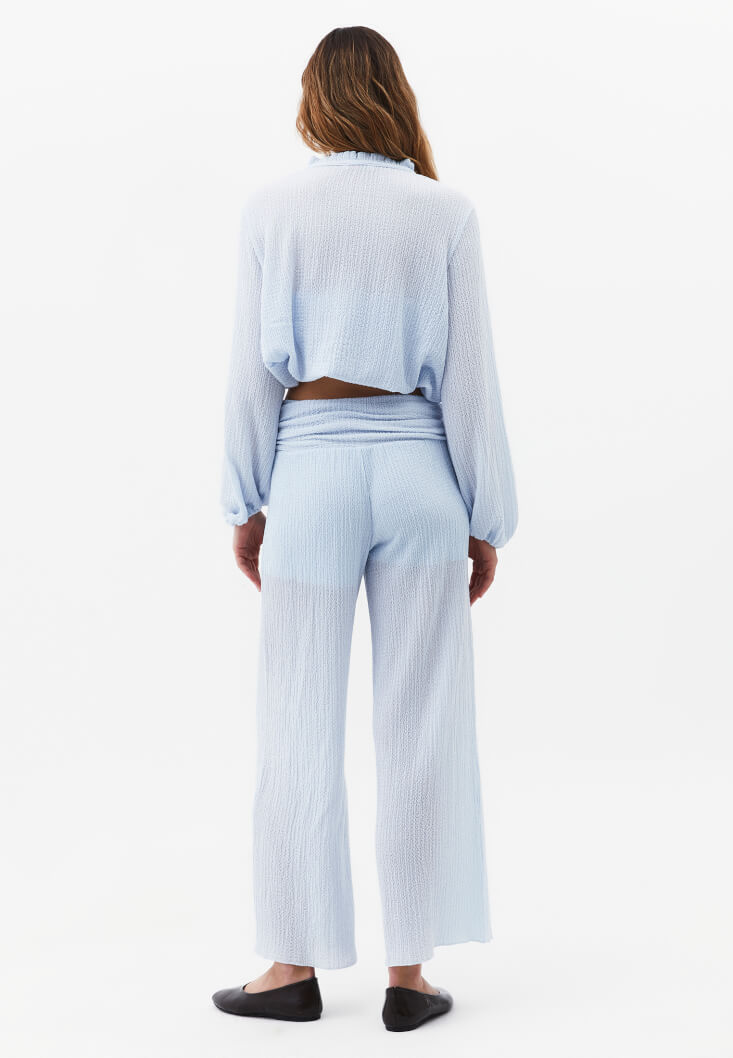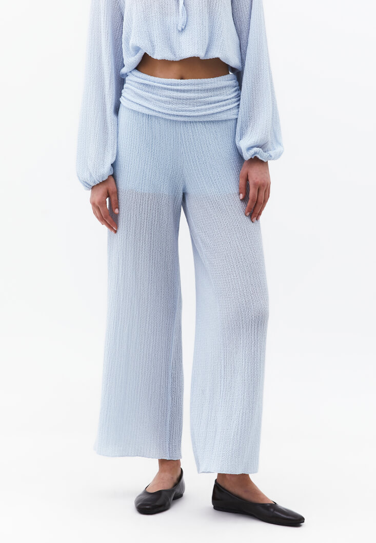 Gök Mavisi Jakarlı Wide-Leg Pantolon