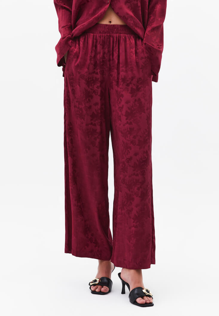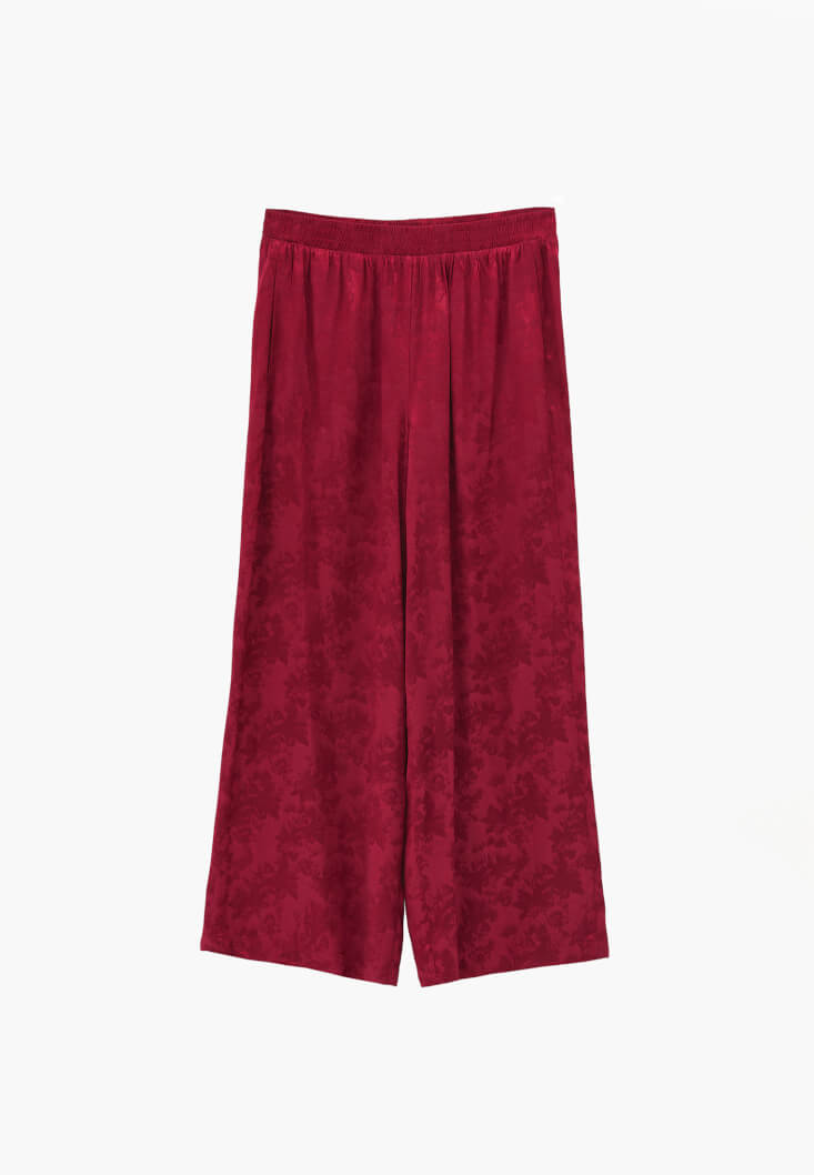 • Bayan Kırmızı Jakarlı Wide-Leg Pantolon