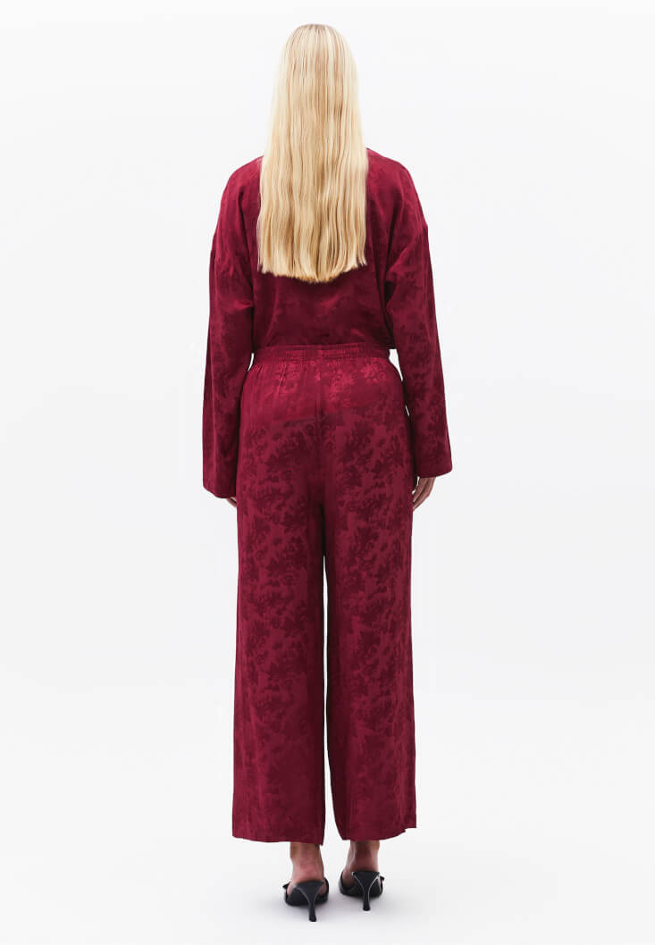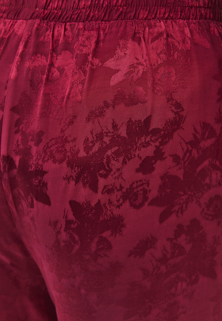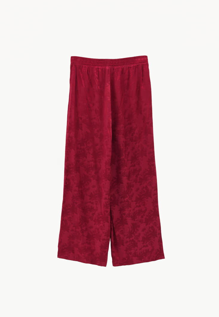 Kırmızı Jakarlı Wide-Leg Pantolon