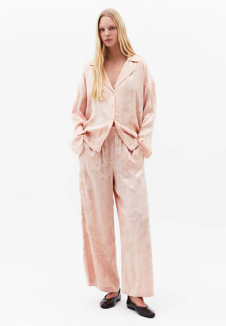 • Bayan Pembe Jakarlı Wide-Leg Pantolon
