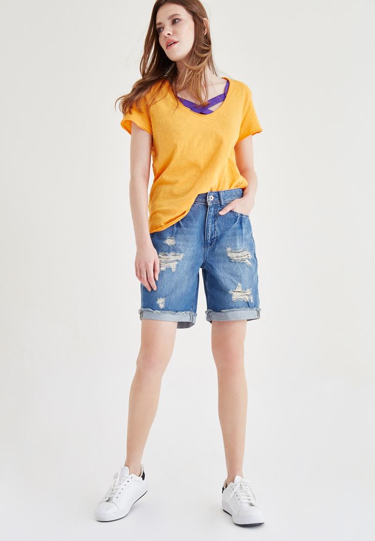 Daha cesur, daha asi ve daha çarpici bir imaj yaratmak için modanin belirgin çizgisi yirtik ve püsküllü sortlarla özgüveninizi yansitacaksiniz. OXXO jean sortla basiclerinizin etkisini arttiracaksiniz. Dökümlü ve bol bluzlariniza sportif havasiyla ahenk katacak olan jean sortla özgür ve özgün tarzinizi olusturarak dikkat çekeceksiniz. Isterseniz firfir detayli bluzlarinizi hasir bir sapkayla tamamlayarak sortunuzdaki asi çizgileri yumusatabilir ama göz alici sikliginizi ortaya sermeye devam edebilirsiniz. “Denim on denim” modasina uygun olarak üzerine jean ceketlerinizi, yeleklerinizi ya da gömleklerinizi tercih edip spor ayakkabilarinizla kombininizi tamamlayabilirsiniz. Metal takilar kullanarak daha da iddiali olabilir ya da rozetleriniz ve bandanalarinizla en küçük detaylarda bile sportif ruhunuzu yansitabileceginizi gösterebilirsiniz. Her sekilde farkinizi ortaya koyacaginiz jean sorta dolabinizda yer açin!