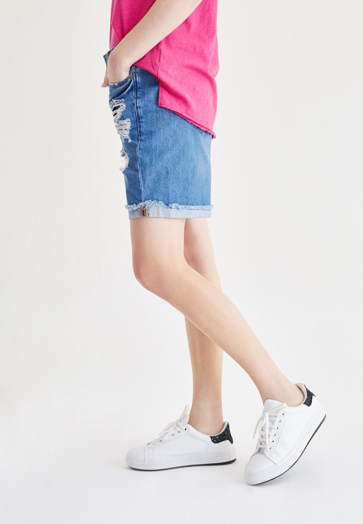 Daha cesur, daha asi ve daha çarpici bir imaj yaratmak için modanin belirgin çizgisi yirtik ve püsküllü sortlarla özgüveninizi yansitacaksiniz. OXXO jean sortla basiclerinizin etkisini arttiracaksiniz. Dökümlü ve bol bluzlariniza sportif havasiyla ahenk katacak olan jean sortla özgür ve özgün tarzinizi olusturarak dikkat çekeceksiniz. Isterseniz firfir detayli bluzlarinizi hasir bir sapkayla tamamlayarak sortunuzdaki asi çizgileri yumusatabilir ama göz alici sikliginizi ortaya sermeye devam edebilirsiniz. “Denim on denim” modasina uygun olarak üzerine jean ceketlerinizi, yeleklerinizi ya da gömleklerinizi tercih edip spor ayakkabilarinizla kombininizi tamamlayabilirsiniz. Metal takilar kullanarak daha da iddiali olabilir ya da rozetleriniz ve bandanalarinizla en küçük detaylarda bile sportif ruhunuzu yansitabileceginizi gösterebilirsiniz. Her sekilde farkinizi ortaya koyacaginiz jean sorta dolabinizda yer açin!