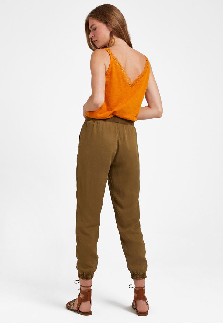 Jogger Pantolon ve V Yaka Dantelli Atlet