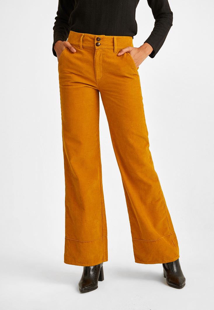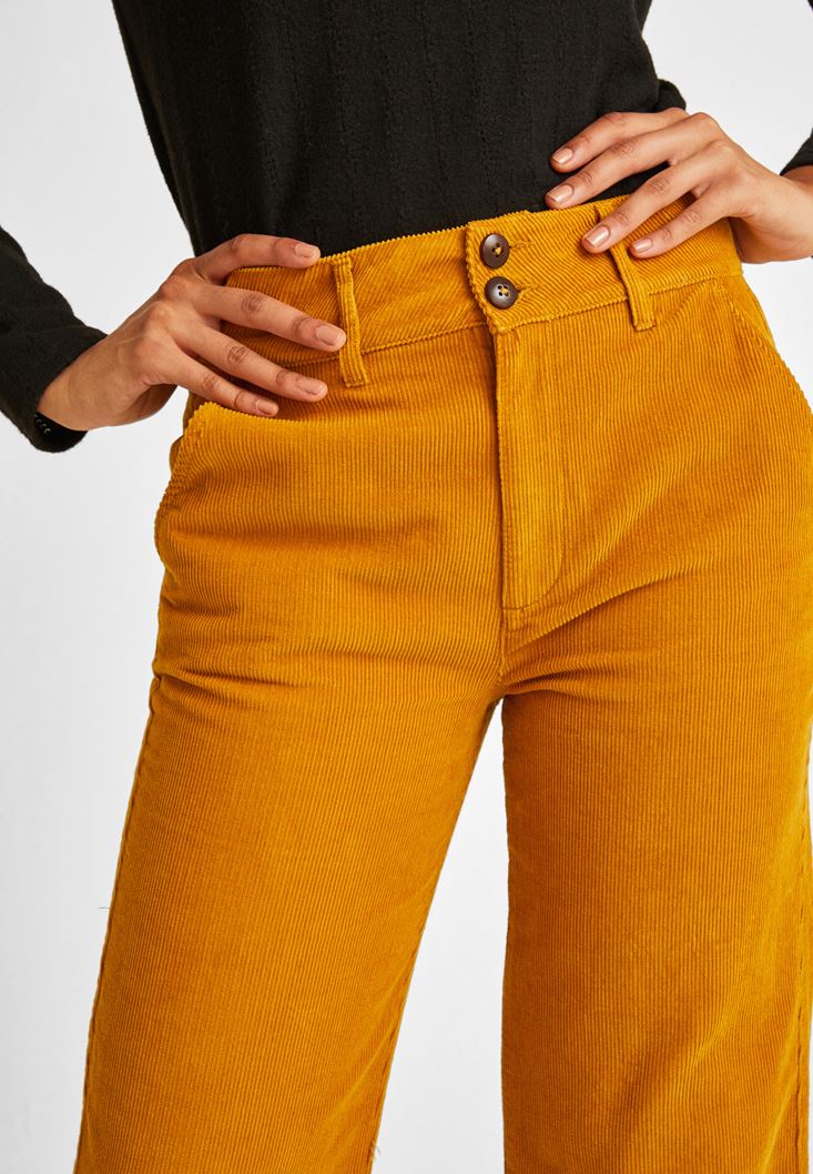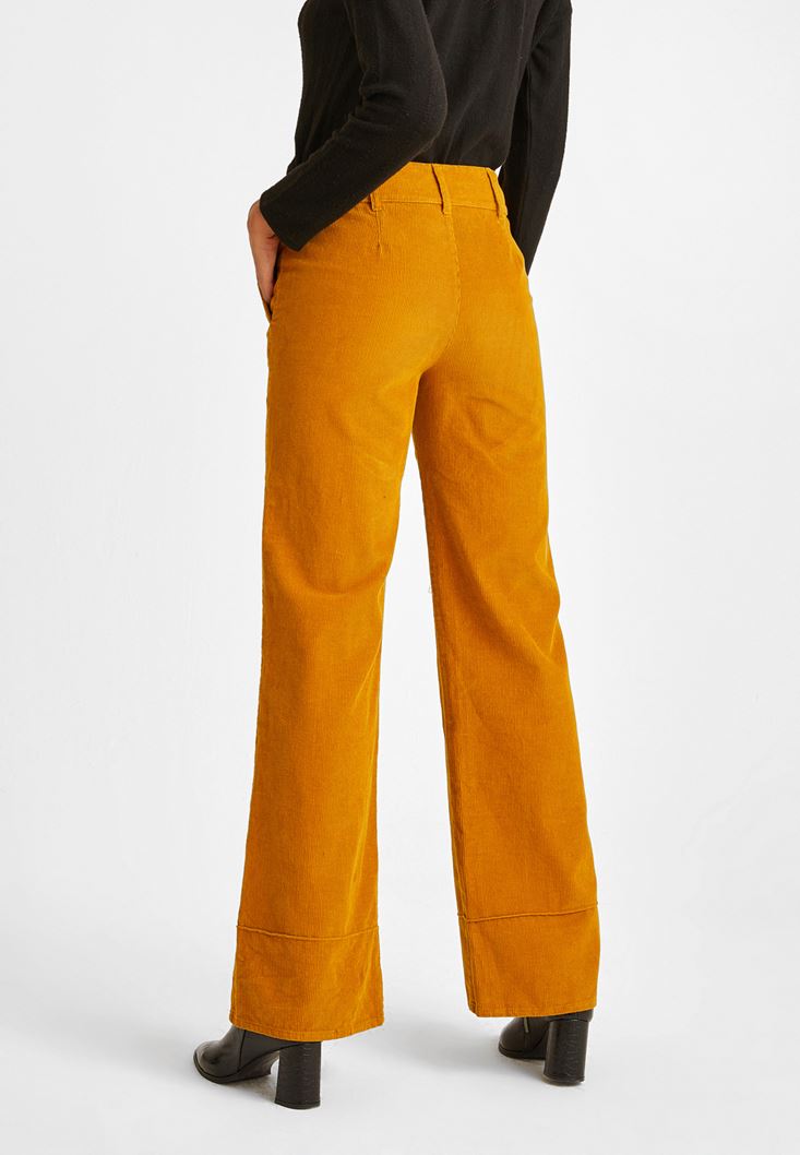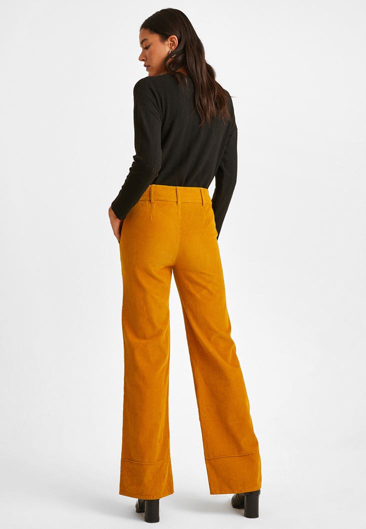 • Bayan Sarı Kadife Yüksek Bel Pantolon