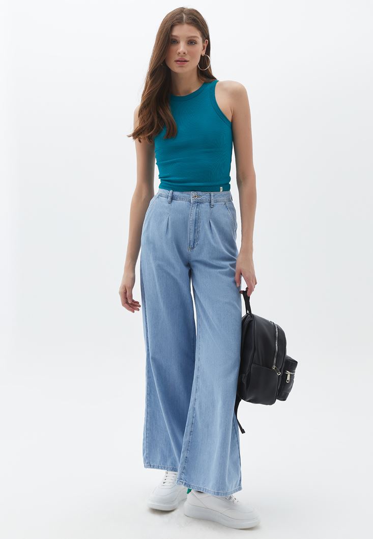 Pamuklu Atlet ve Denim Pantolon Kombini