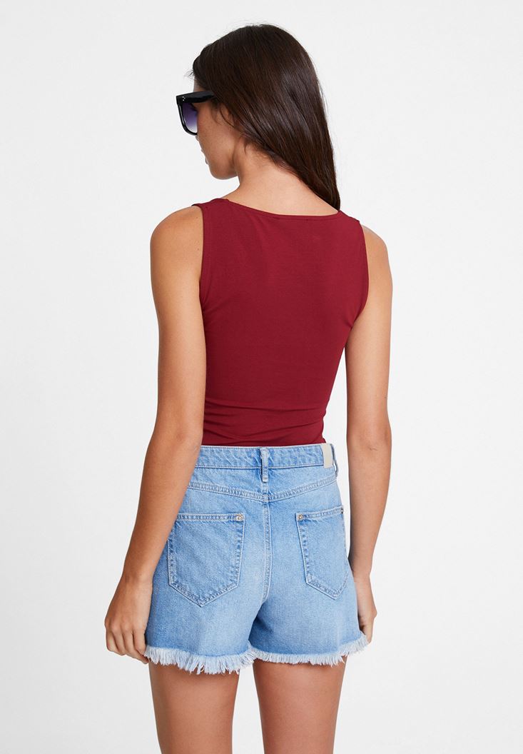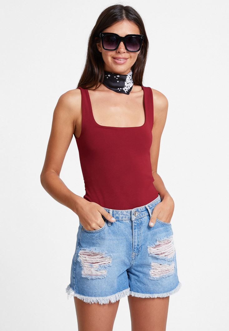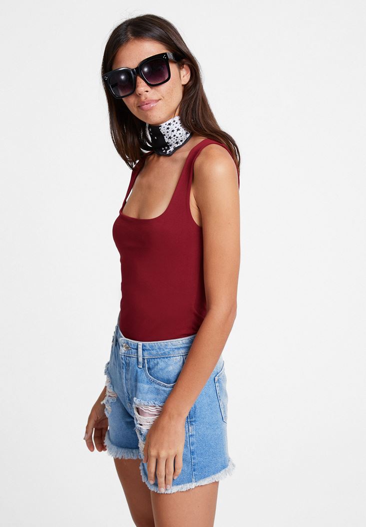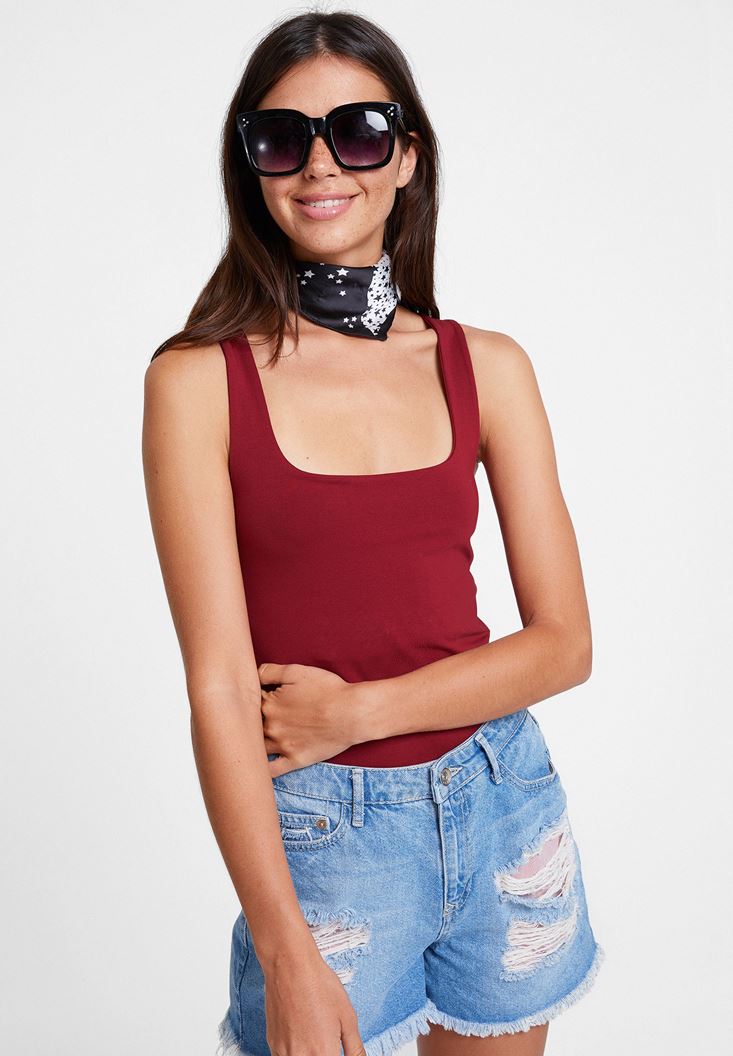 Bordo Kalın Askılı Kare Yaka Atlet