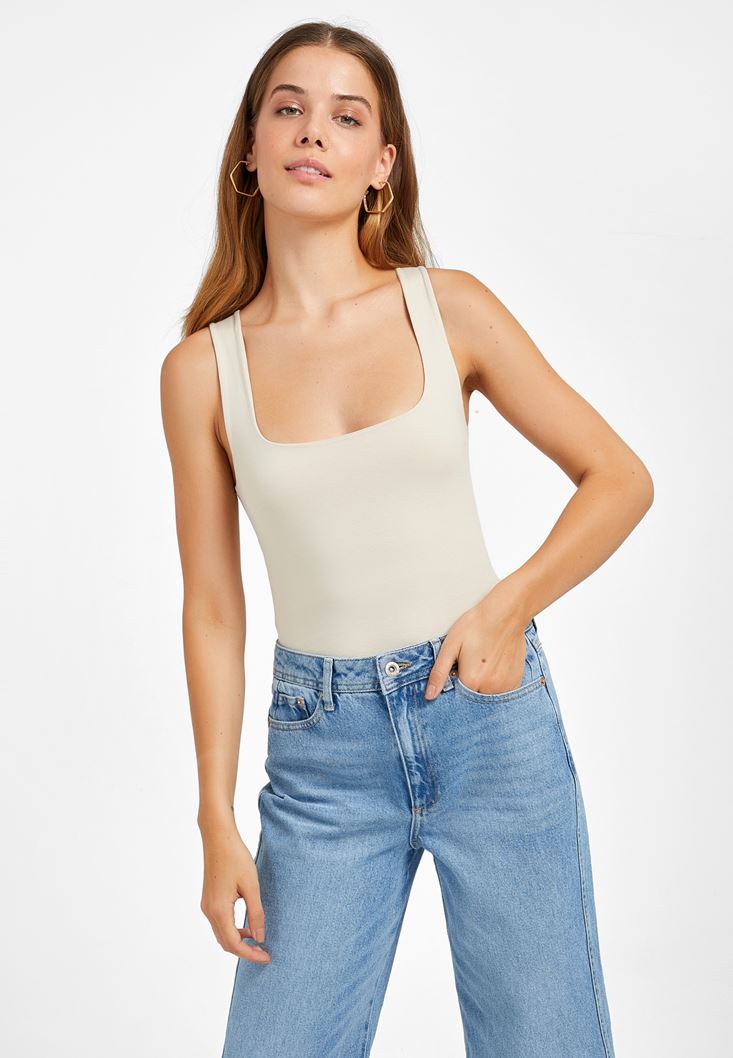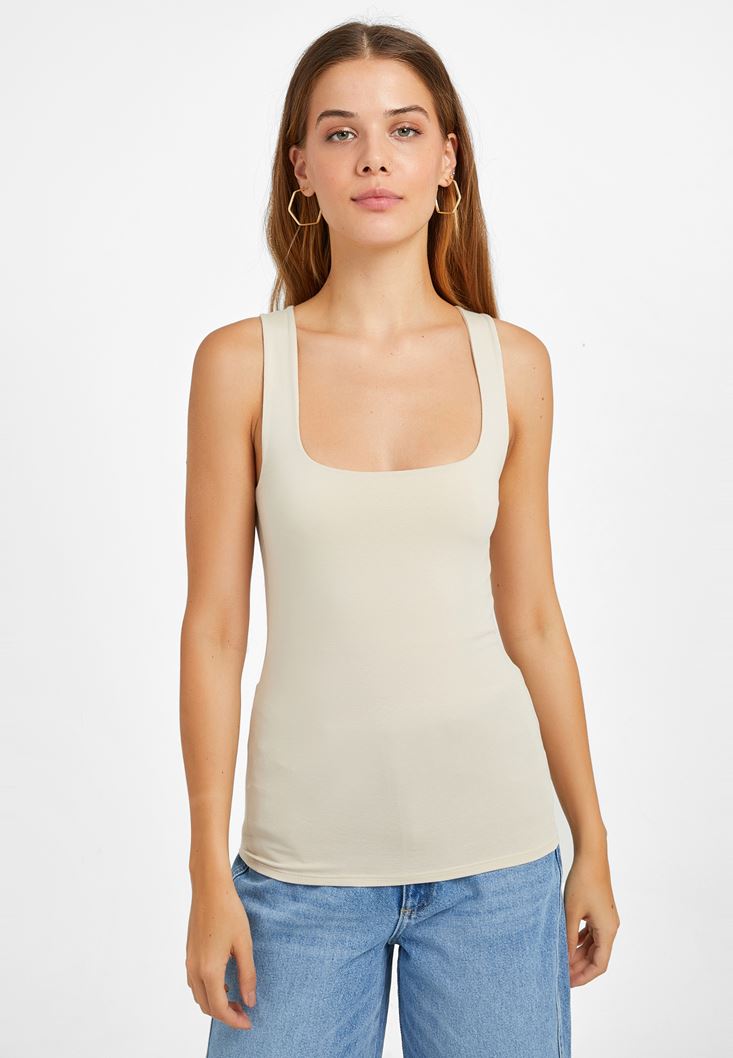• Bayan Krem Kalın Askılı Kare Yaka Atlet