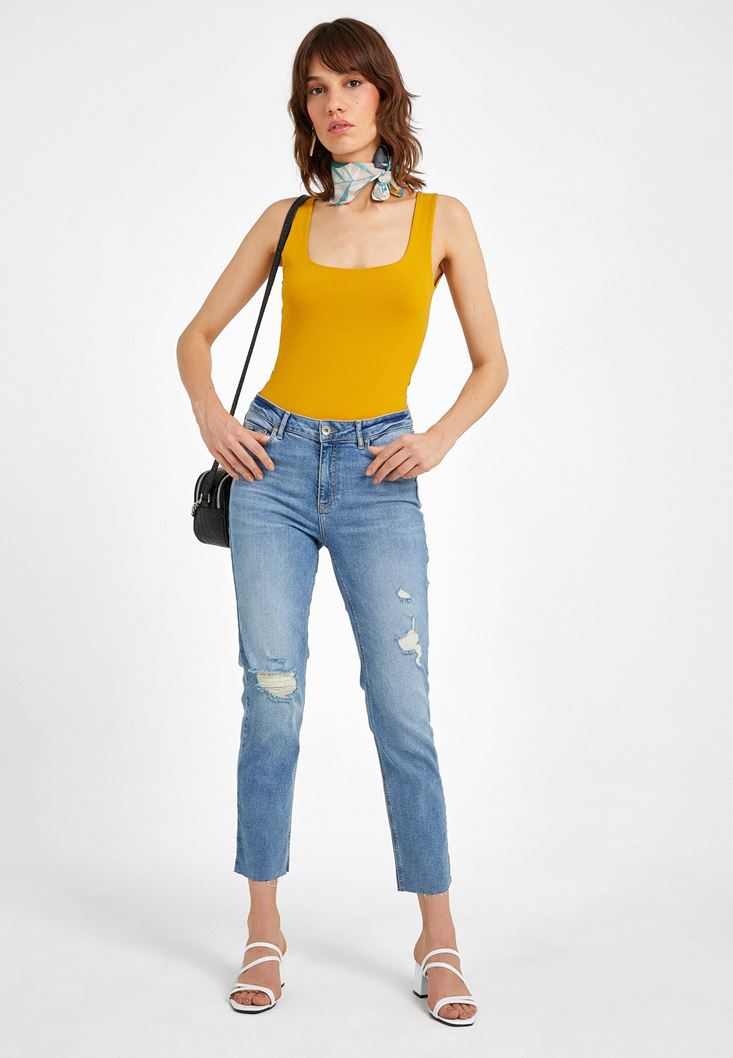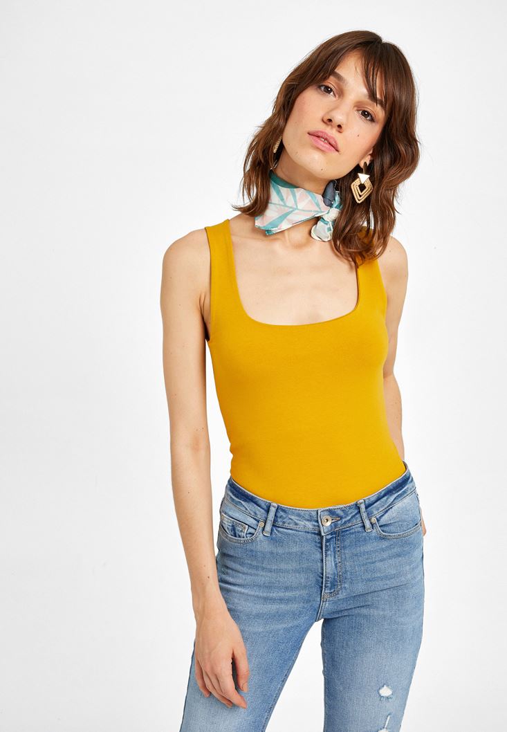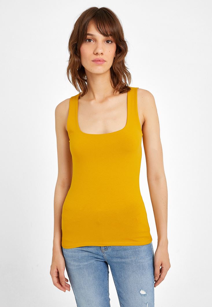 Sarı Kalın Askılı Kare Yaka Atlet