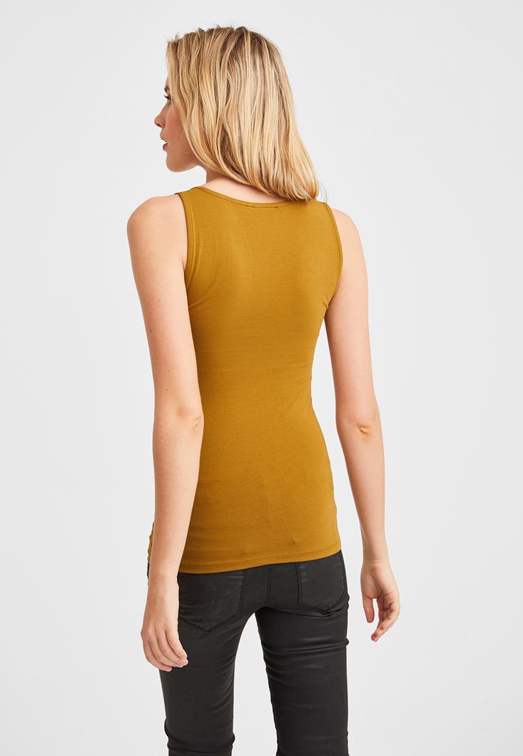Kahverengi Kalın Askılı Kare Yaka Atlet