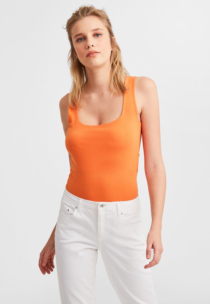 • Bayan Turuncu Kalın Askılı Kare Yaka Atlet