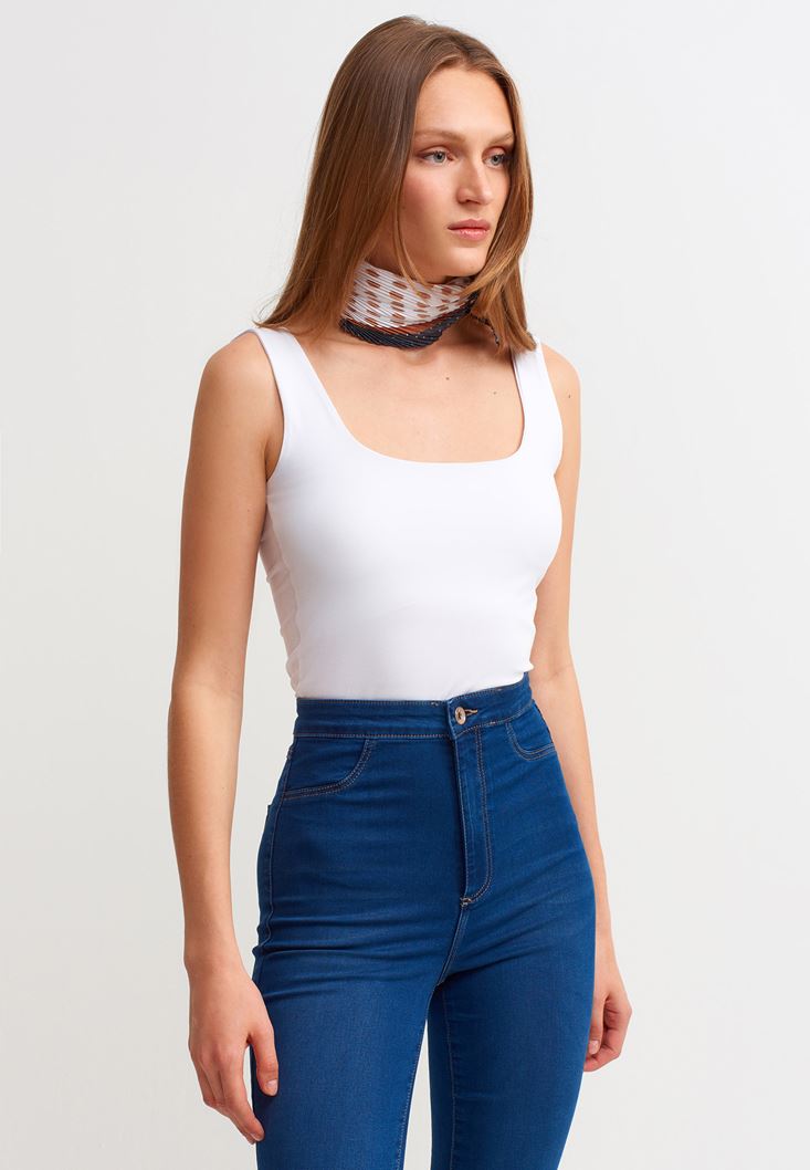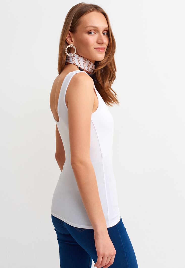 Beyaz Kalın Askılı Kare Yaka Atlet
