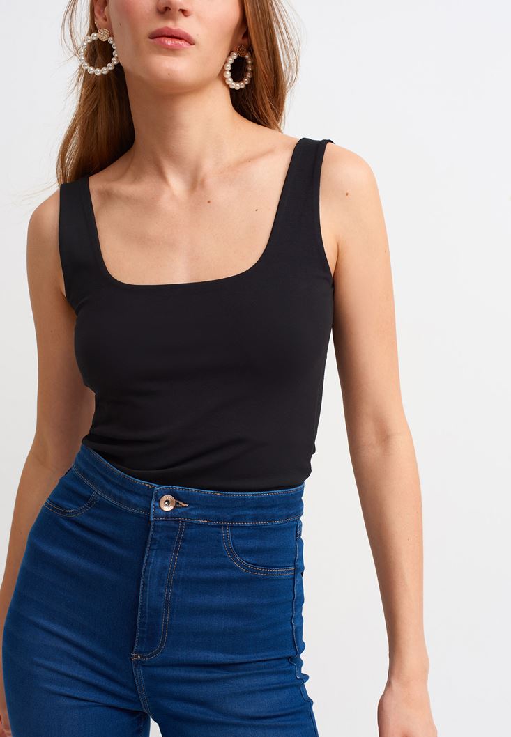 • Bayan Siyah Kalın Askılı Kare Yaka Atlet