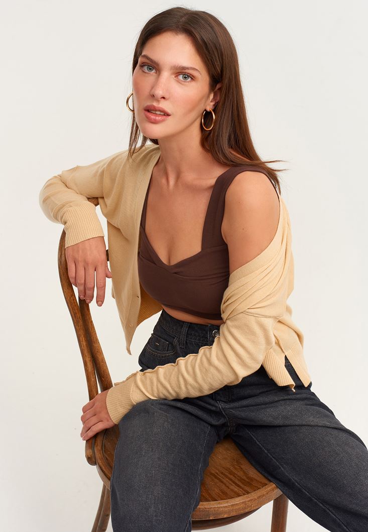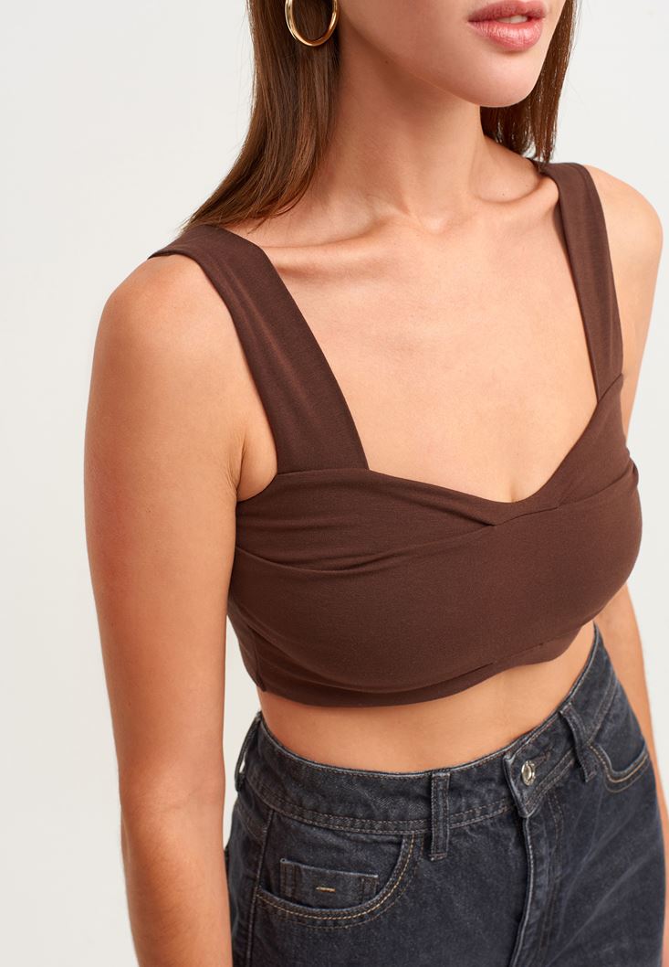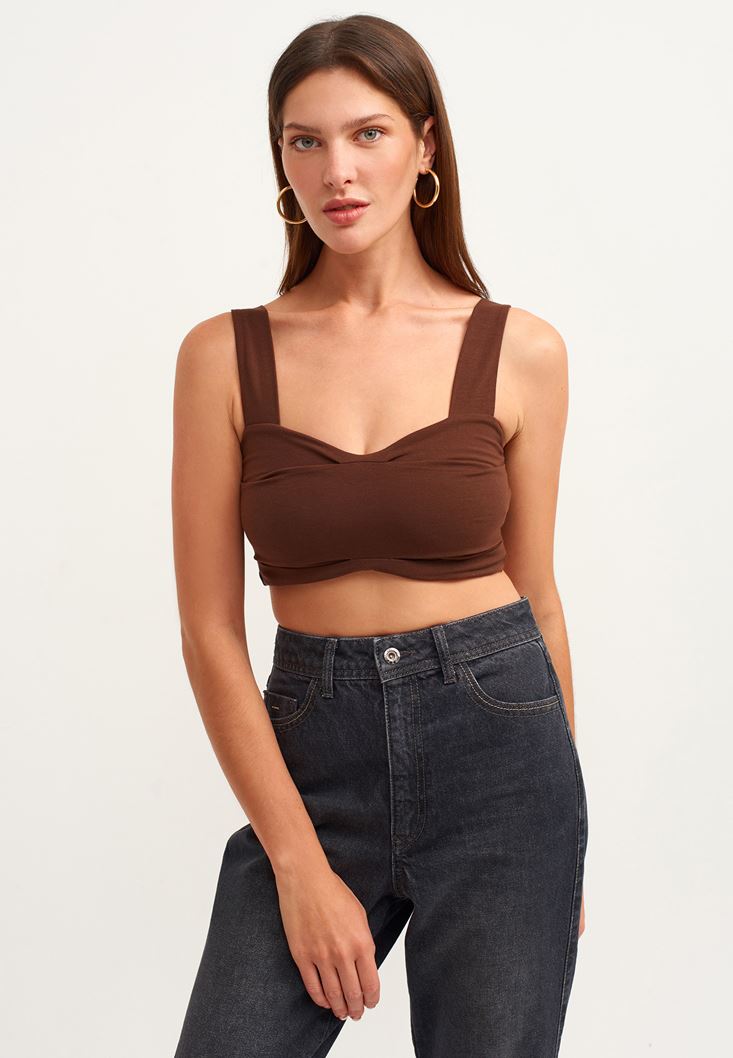 • Bayan Kahverengi Kalın Askılı Pileli Büstiyer