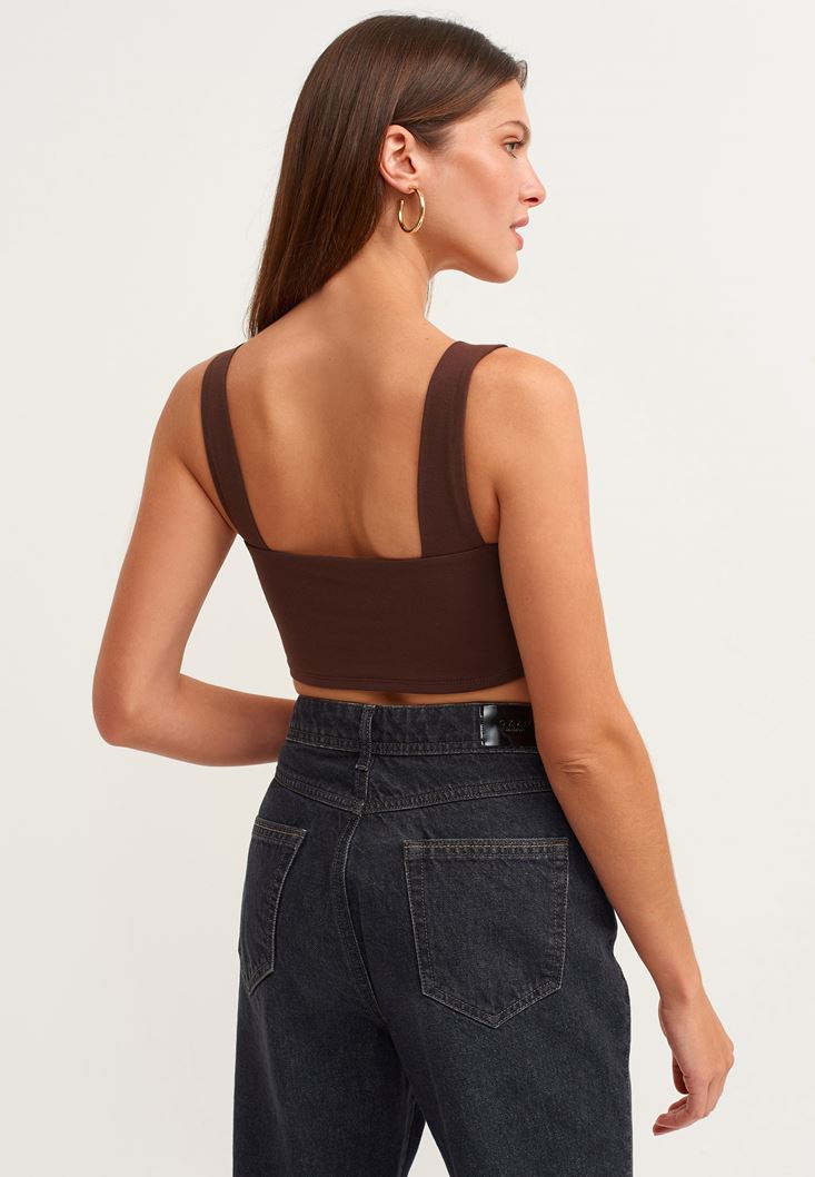 Kahverengi Kalın Askılı Pileli Büstiyer