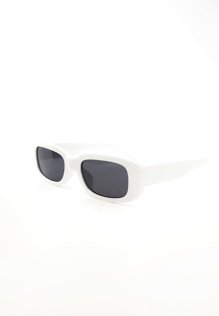 Beyaz Kalın Çerçeveli Güneş Gözlüğü