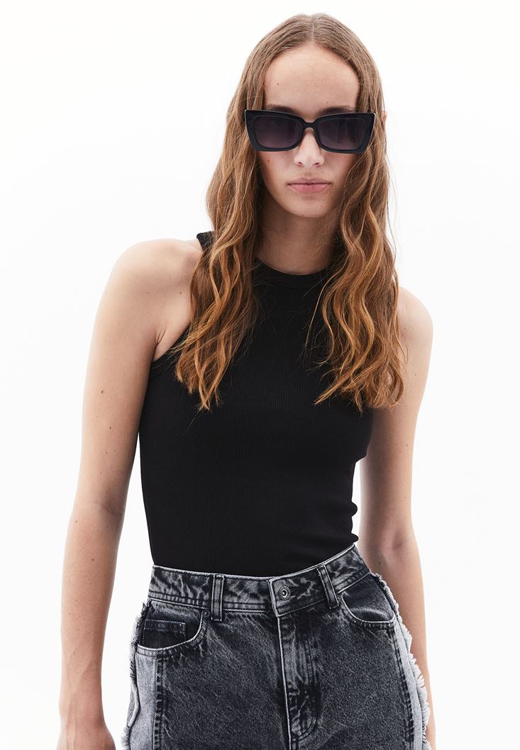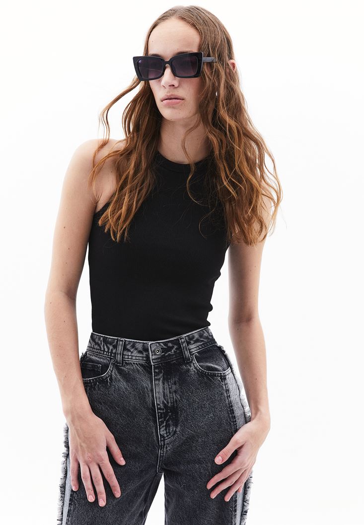 • Bayan Siyah Kalın Pamuklu Halter Yaka Atlet