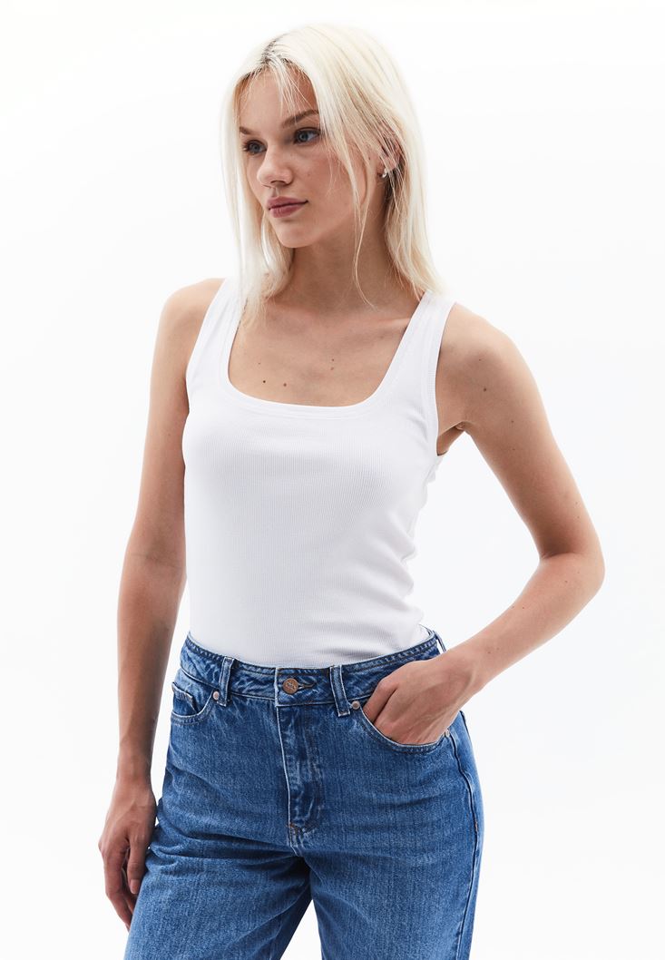• Bayan Beyaz Kalın Pamuklu Kare Yaka Atlet