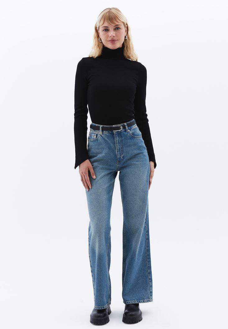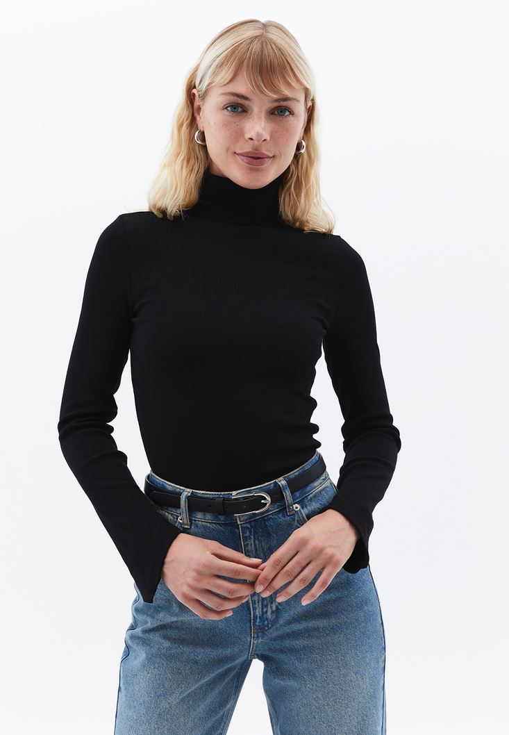 • Bayan Siyah Kalın Pamuklu Roll Neck