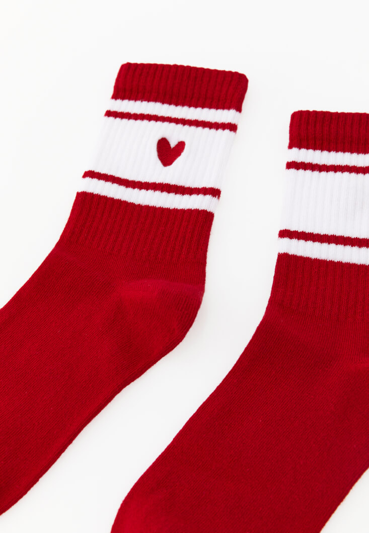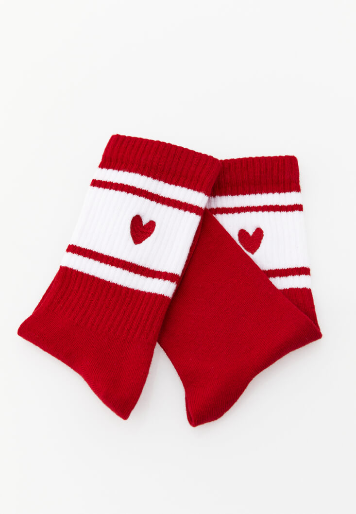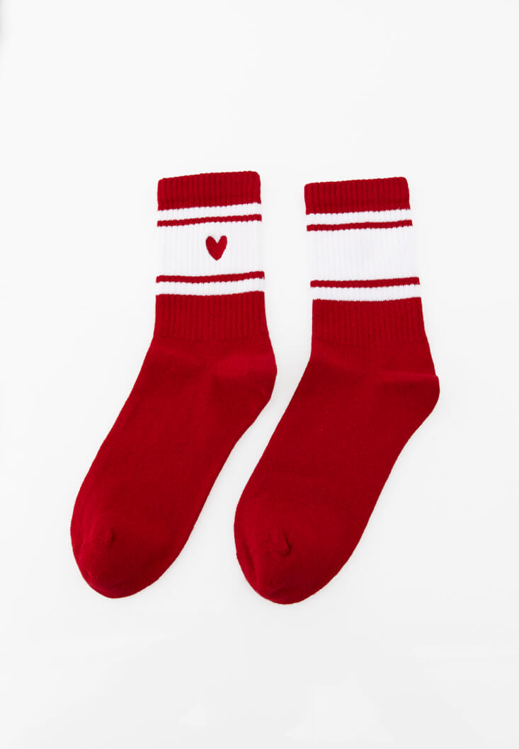 Kırmızı Kalp Detaylı Çorap