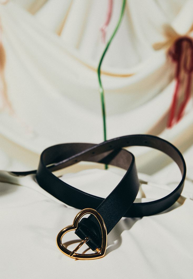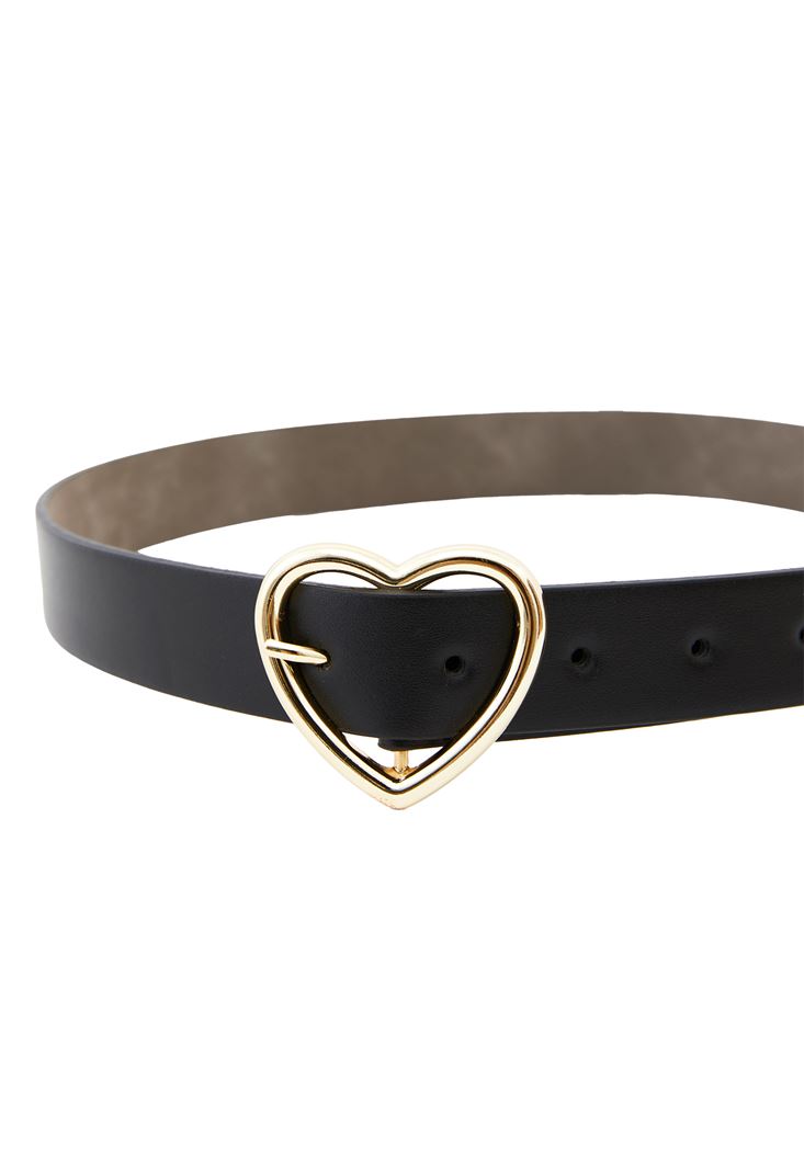 Siyah Kalp Tokalı Kemer