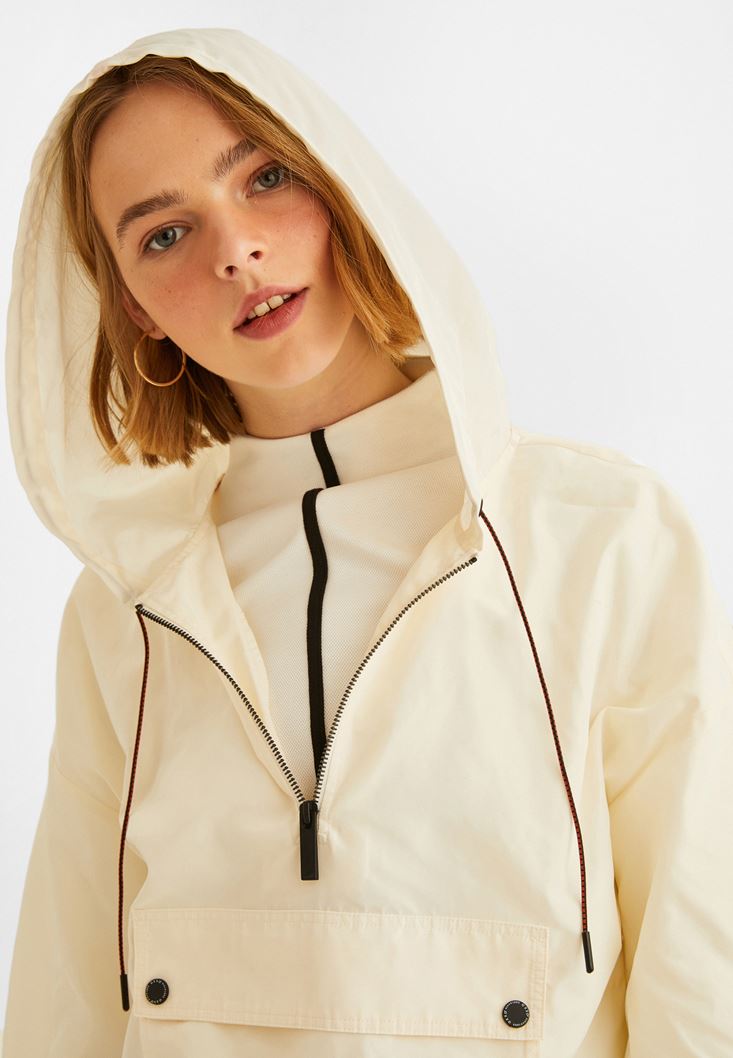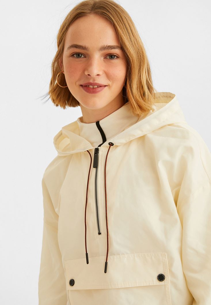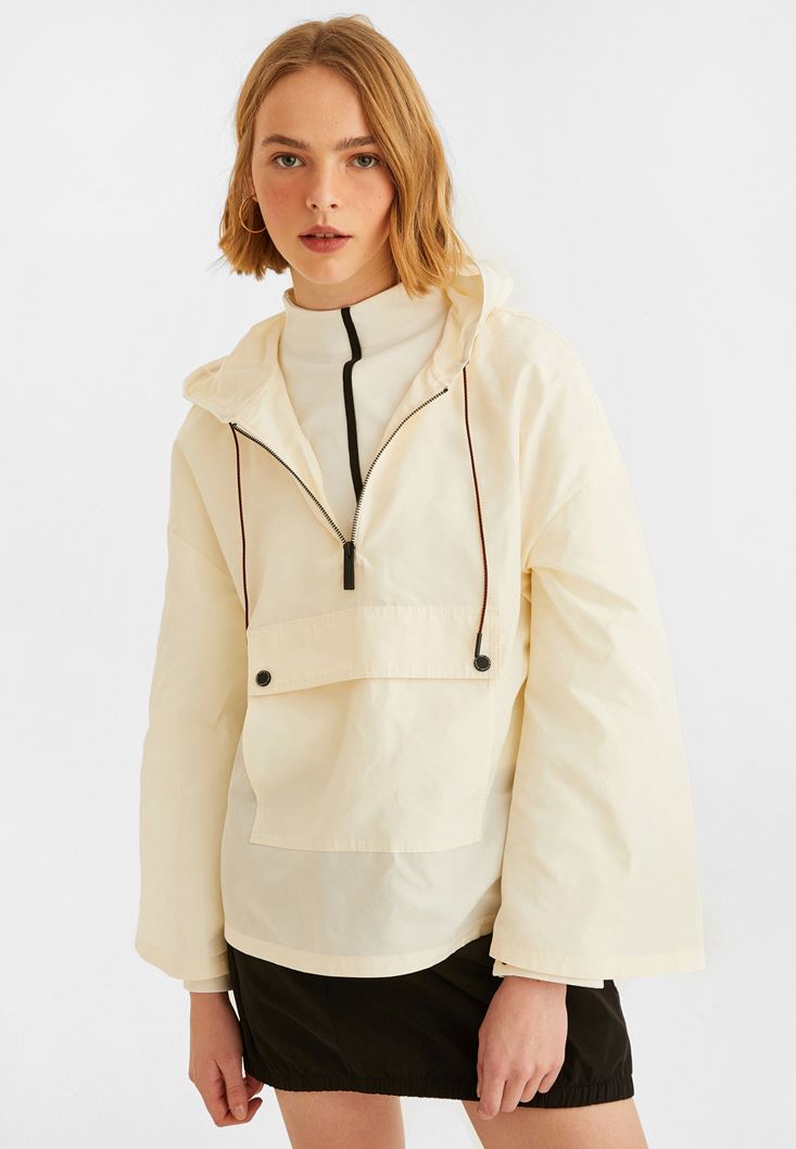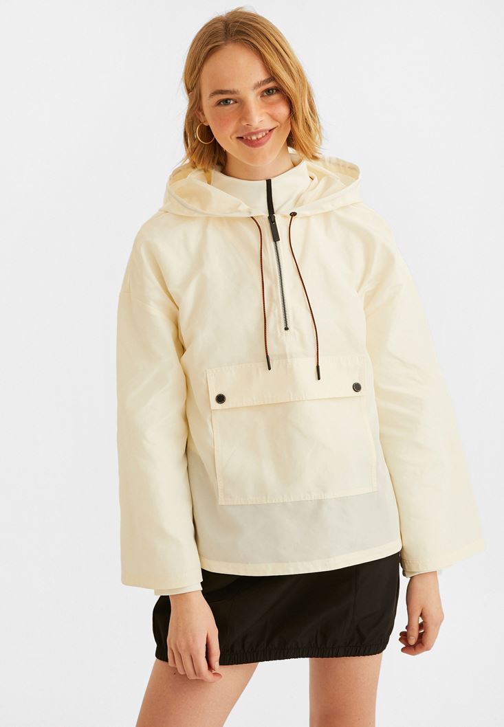 • Bayan Krem Kanguru Cepli Yağmurluk