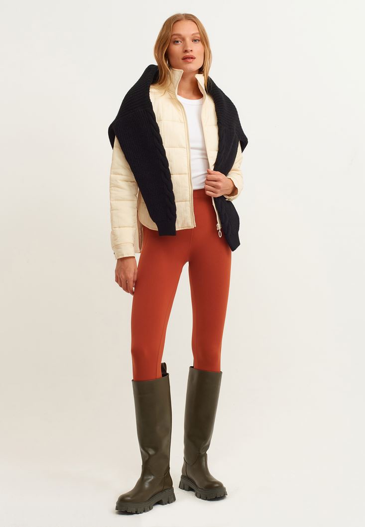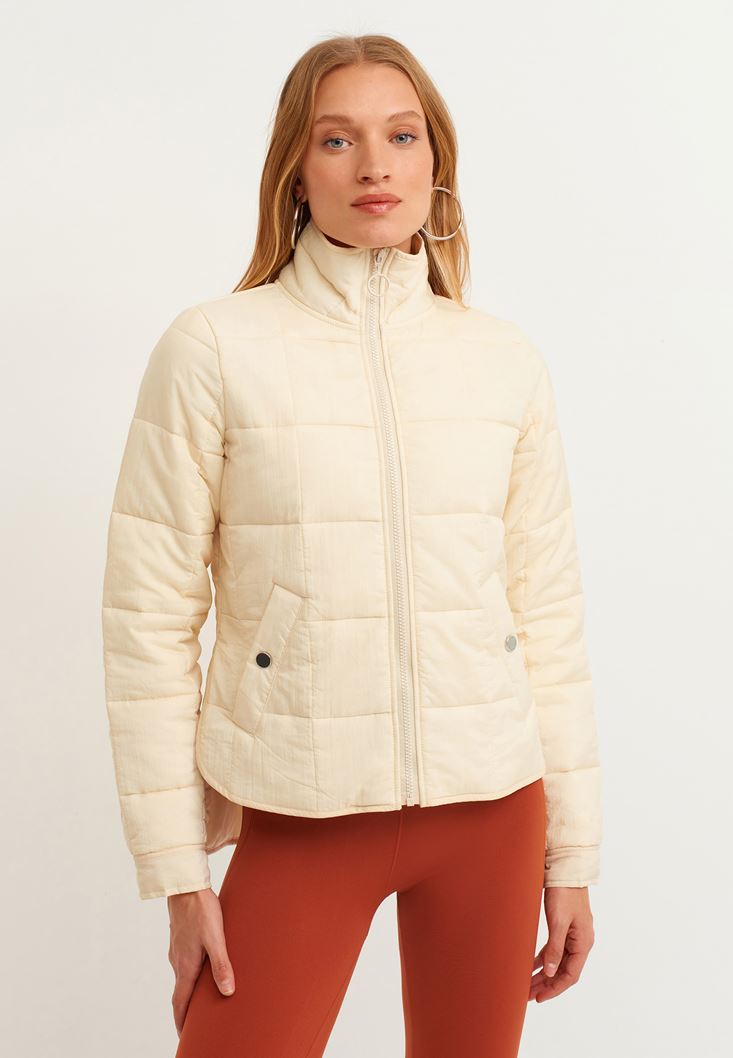 • Bayan Bej Kapitone Detaylı Kısa Mont