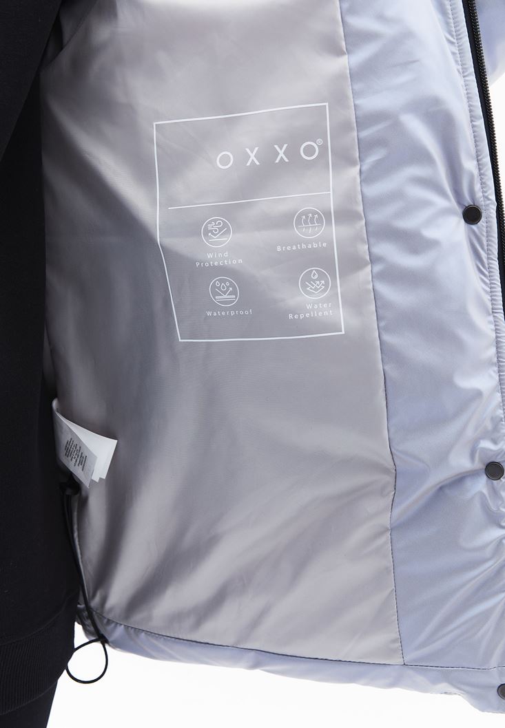 Nefes alabilen kumaş, ekstra su geçirmez özellikli doku, rüzgara ve su basıncına dayanıklı özel tasarım, içi dolgulu puf doku, yüksek yaka, fermuar ve çıtçıt kapamalı, iki cepli, kapitone dikişli, çapraz askılı çanta detaylı, etek ucu ayarlanabilir lastikli.