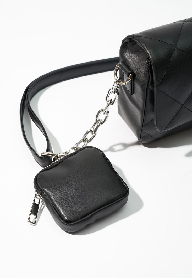 • Bayan Siyah Kapitone Dokulu Askılı Çanta