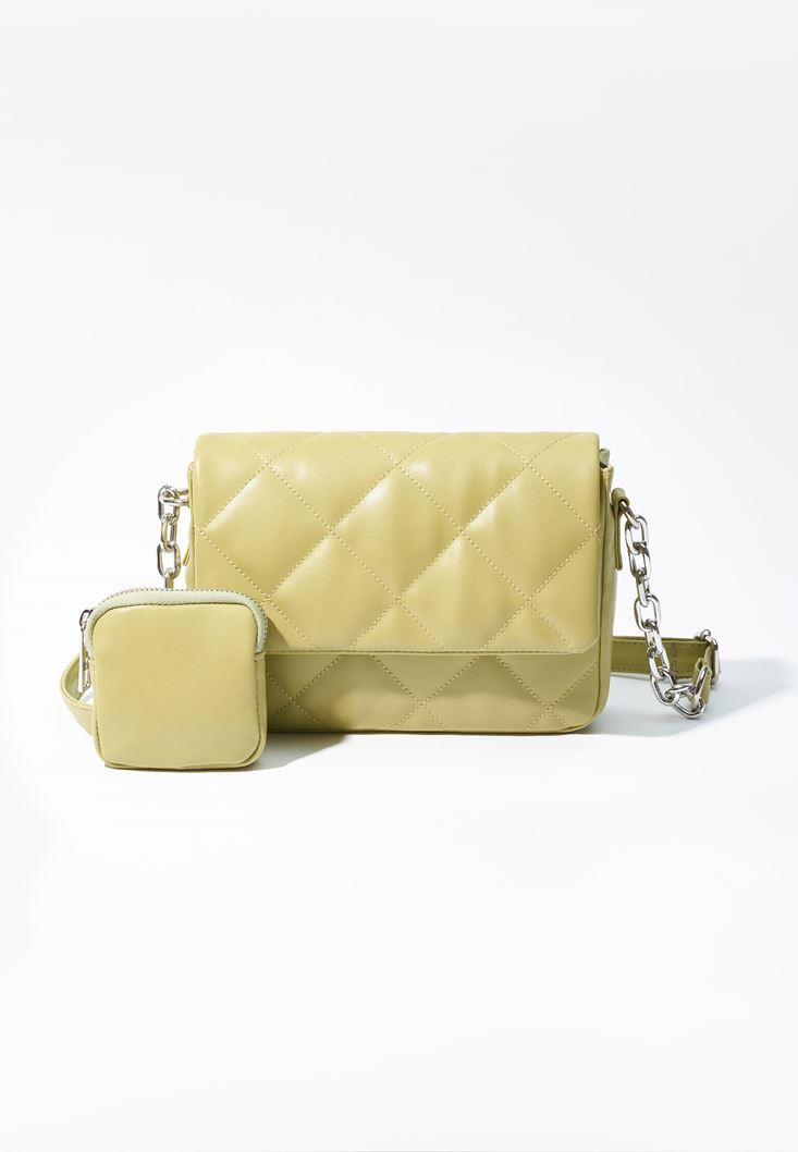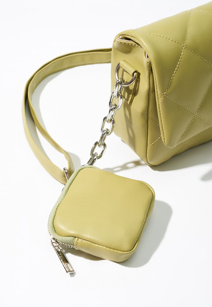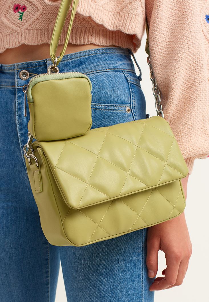 Yeşil Kapitone Dokulu Askılı Çanta