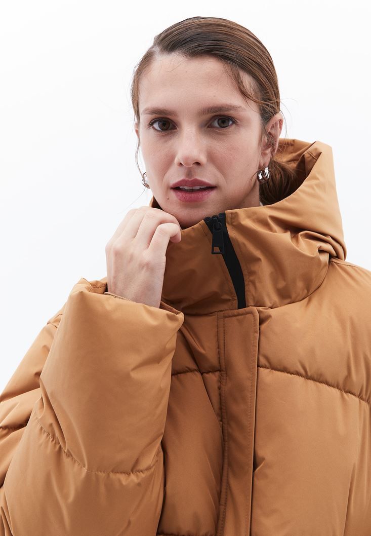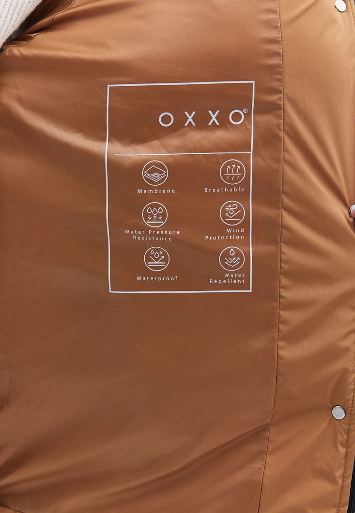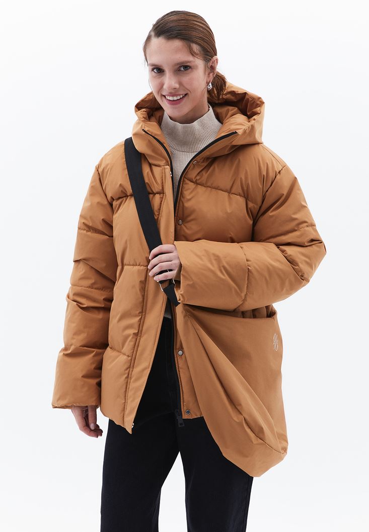 Nefes alabilen kumaş, ekstra su geçirmez özellikli doku, rüzgara ve su basıncına dayanıklı özel tasarım, içi dolgulu puf doku, yüksek yaka, fermuar ve çıtçıt kapamalı, iki cepli, kapitone dikişli, çapraz askılı çanta detaylı.