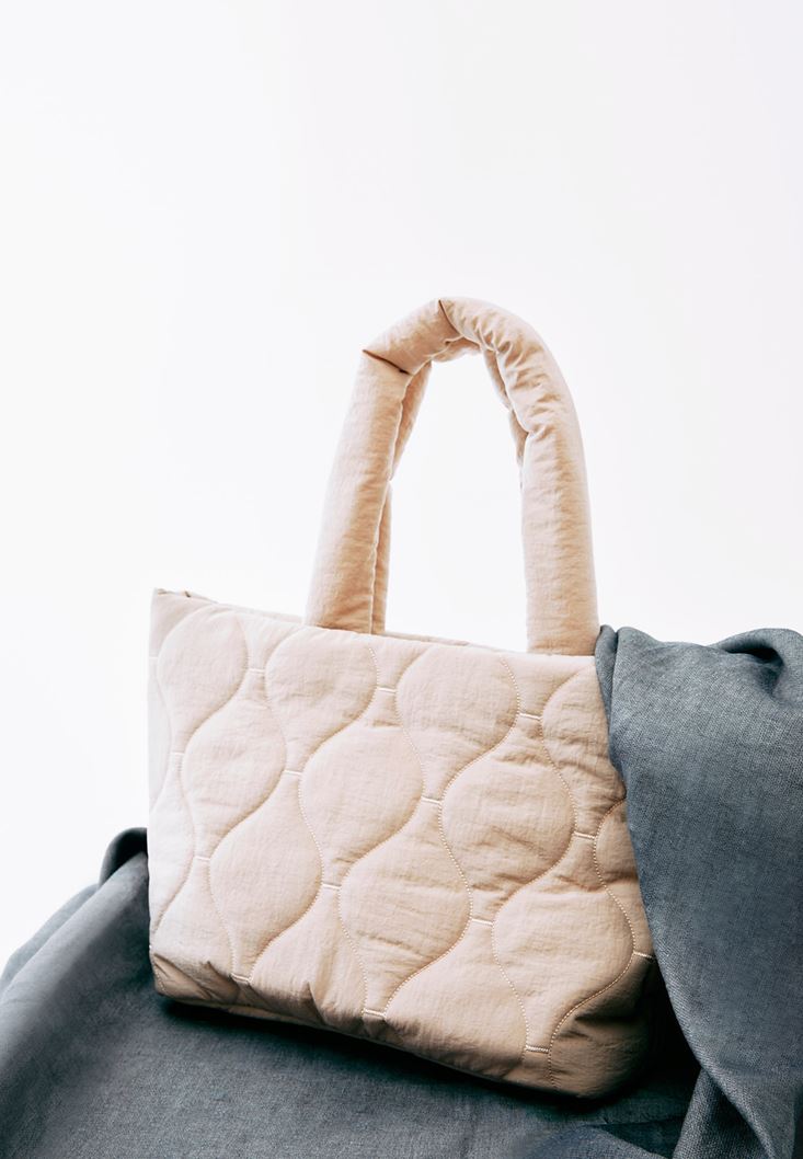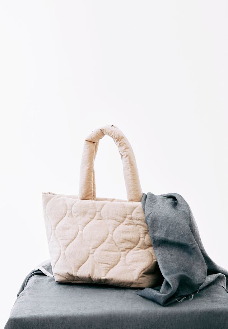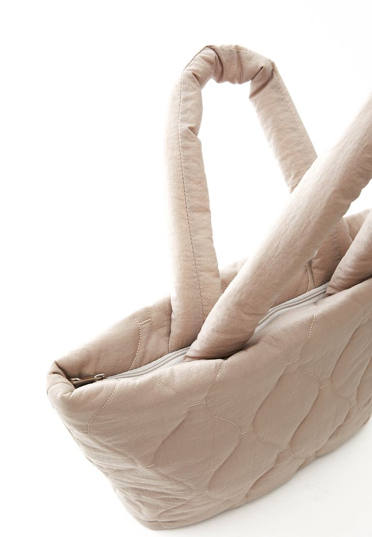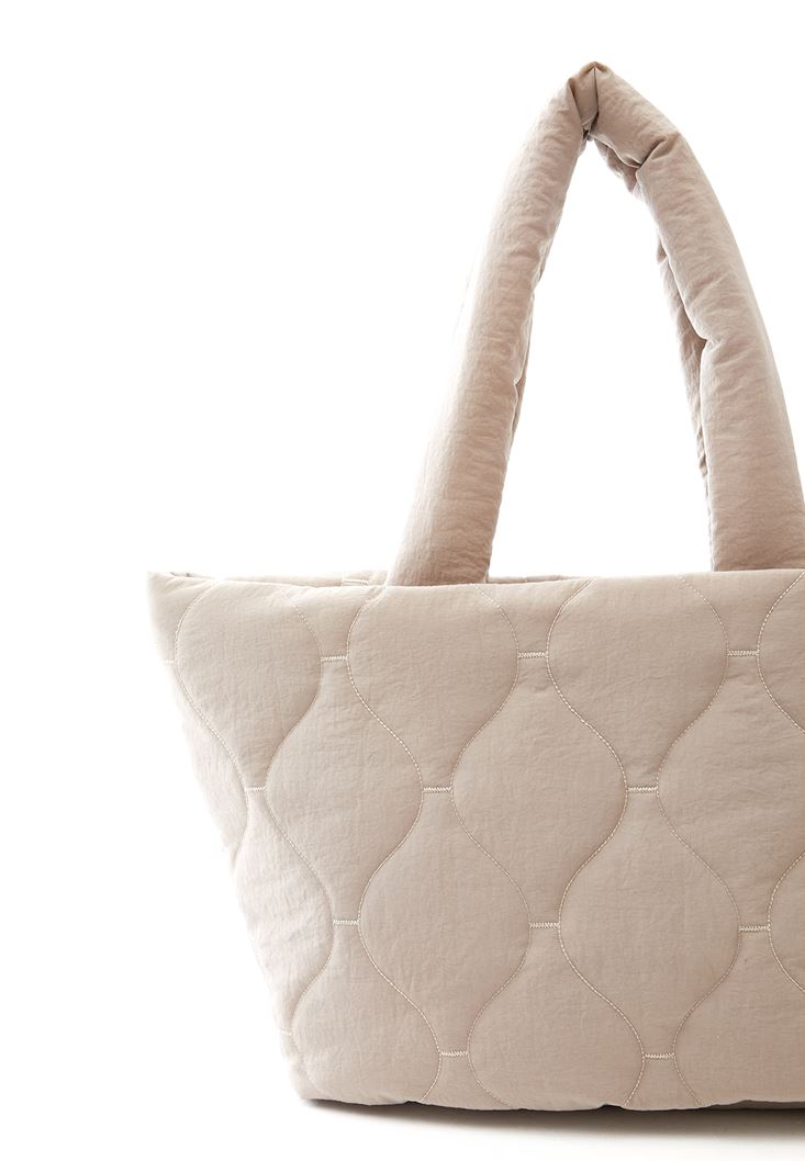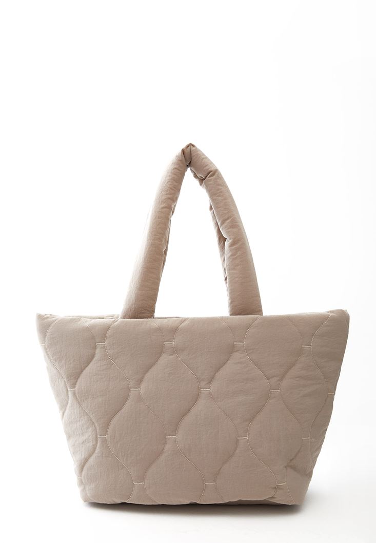 Bej Kapitone Tote Çanta