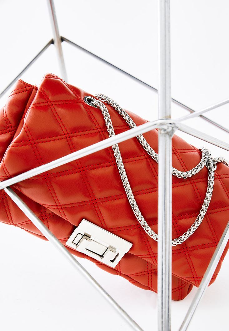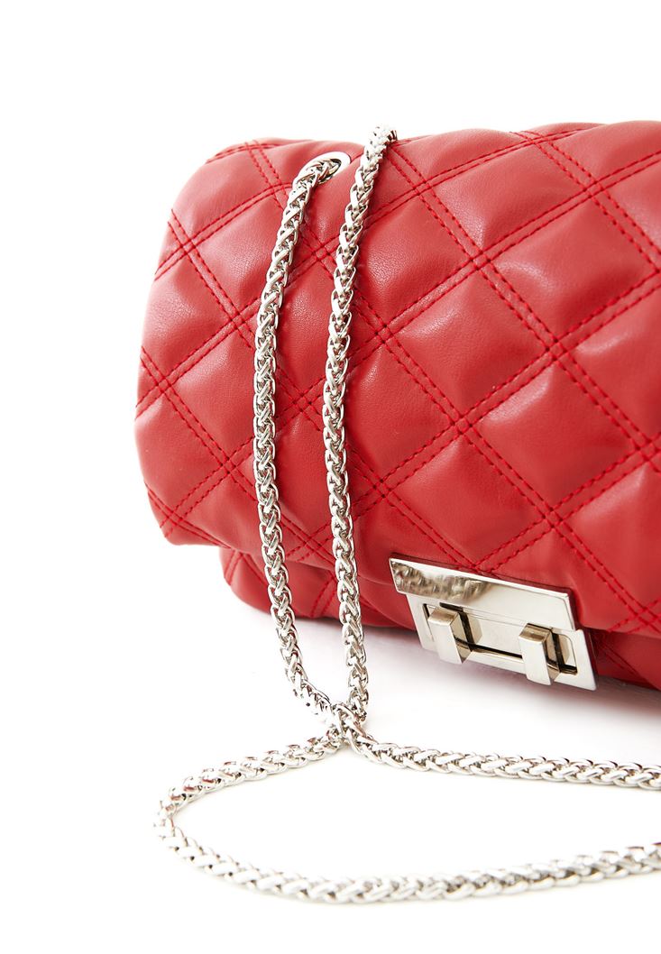 Kırmızı Kapitoneli Askılı Çanta