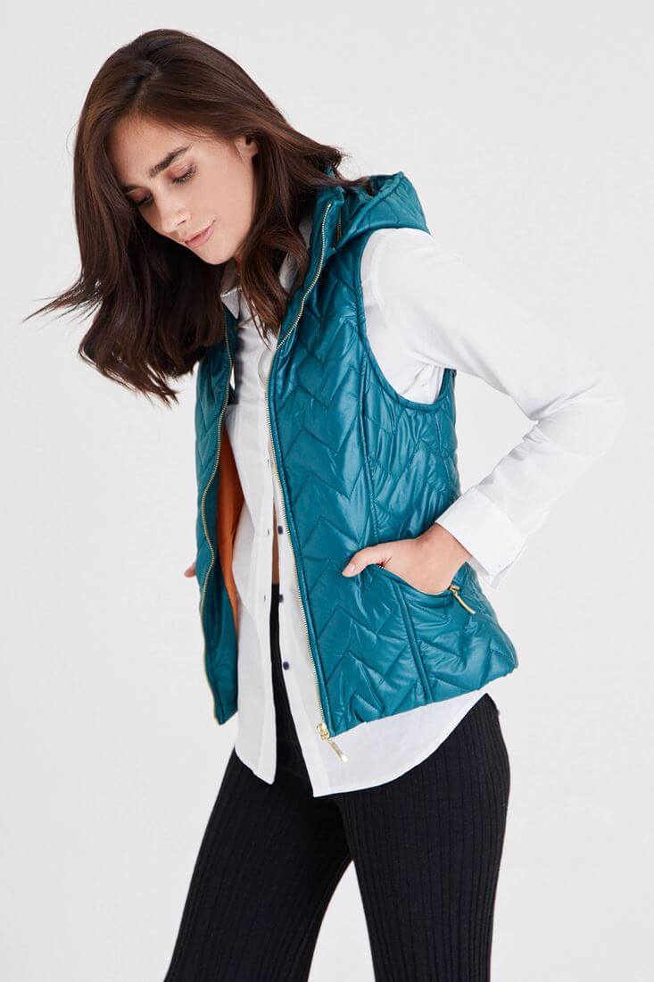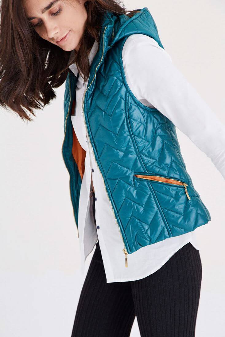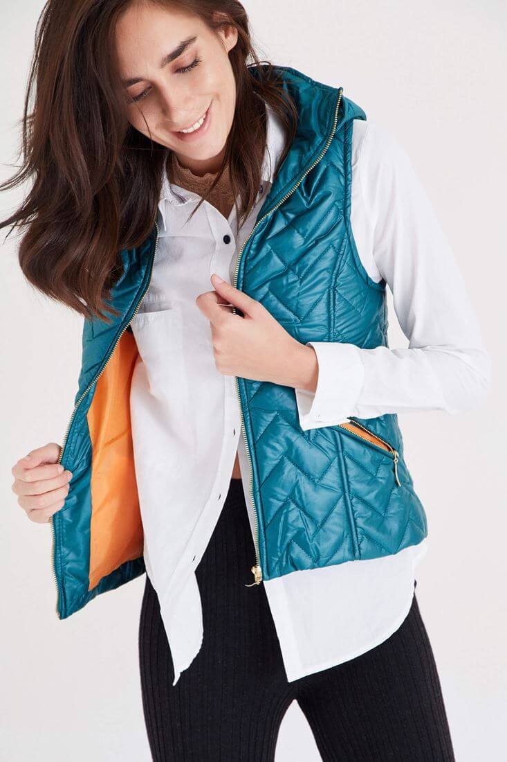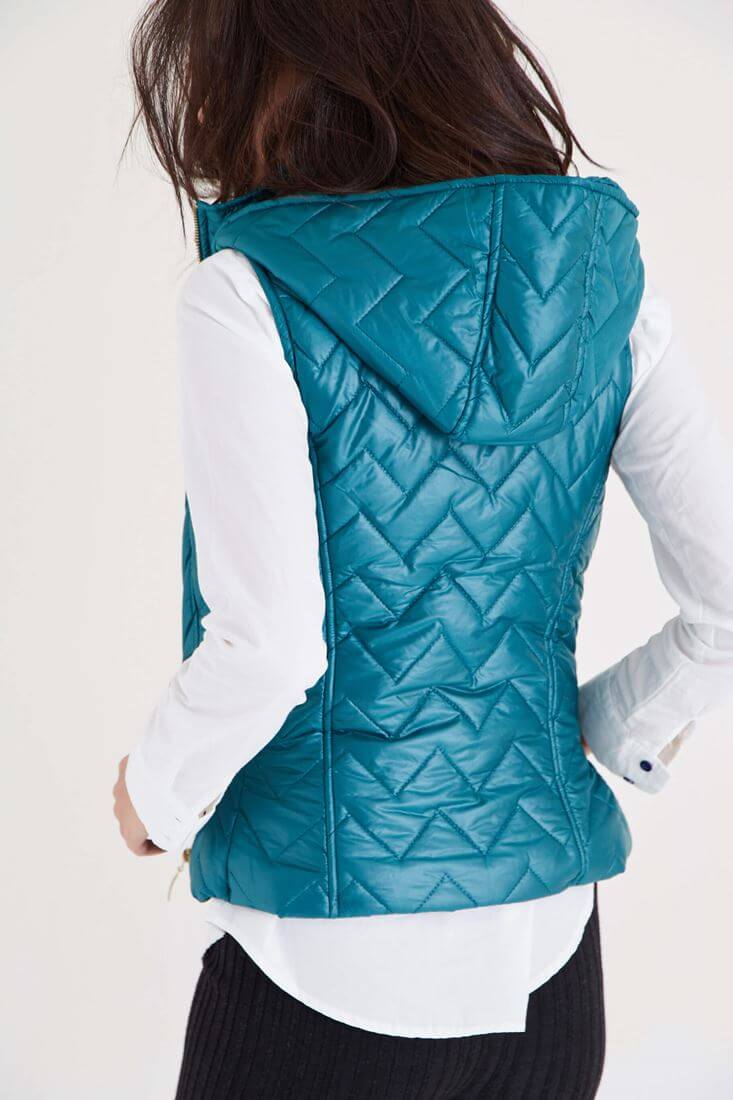 Kapitoneli, renkli, kapüşonlu, spor yelek.