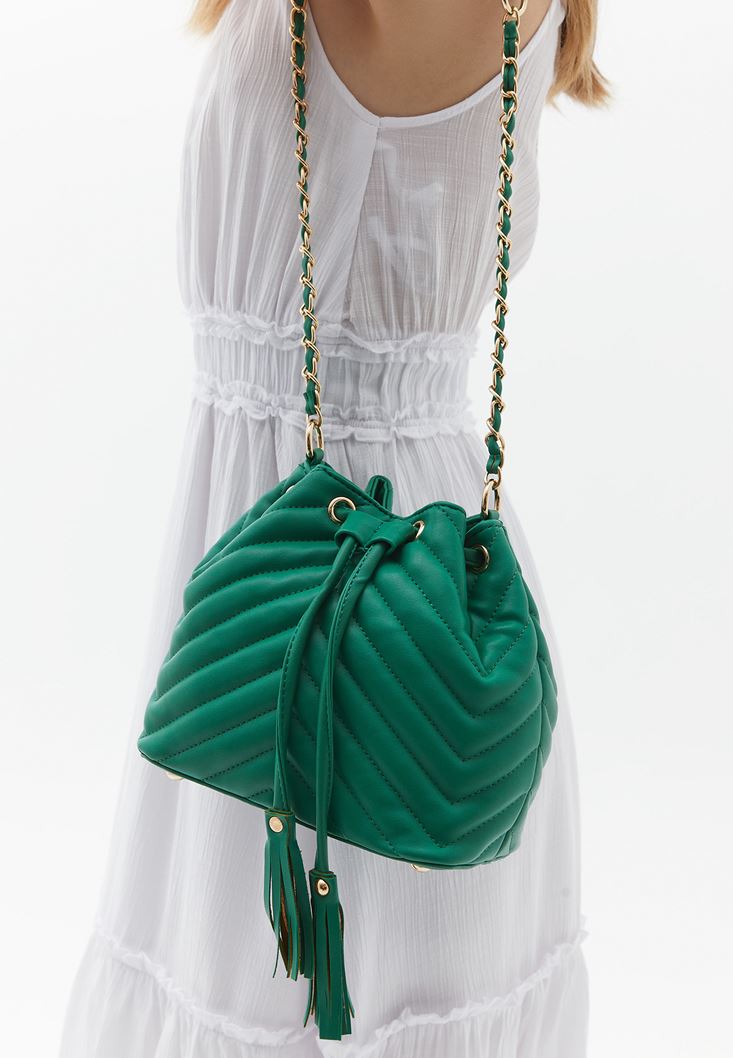 • Bayan Yeşil Kapitoneli Kova Çanta