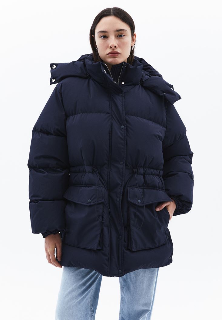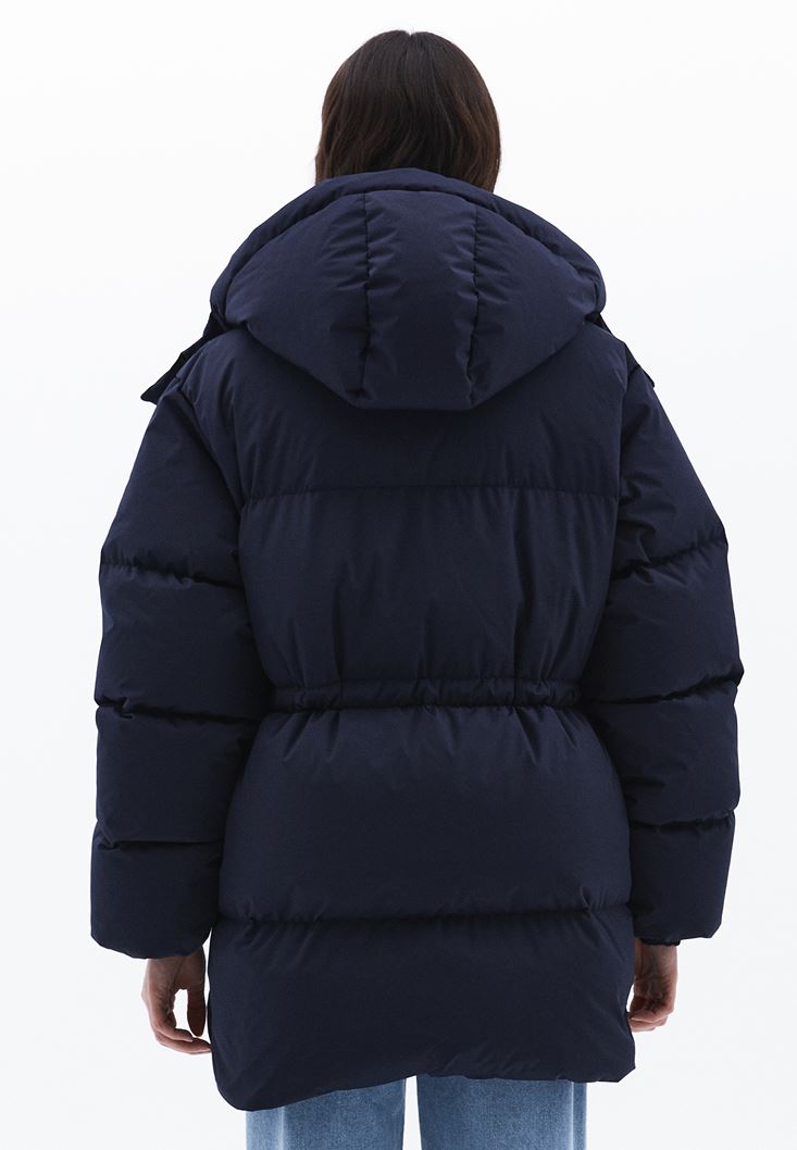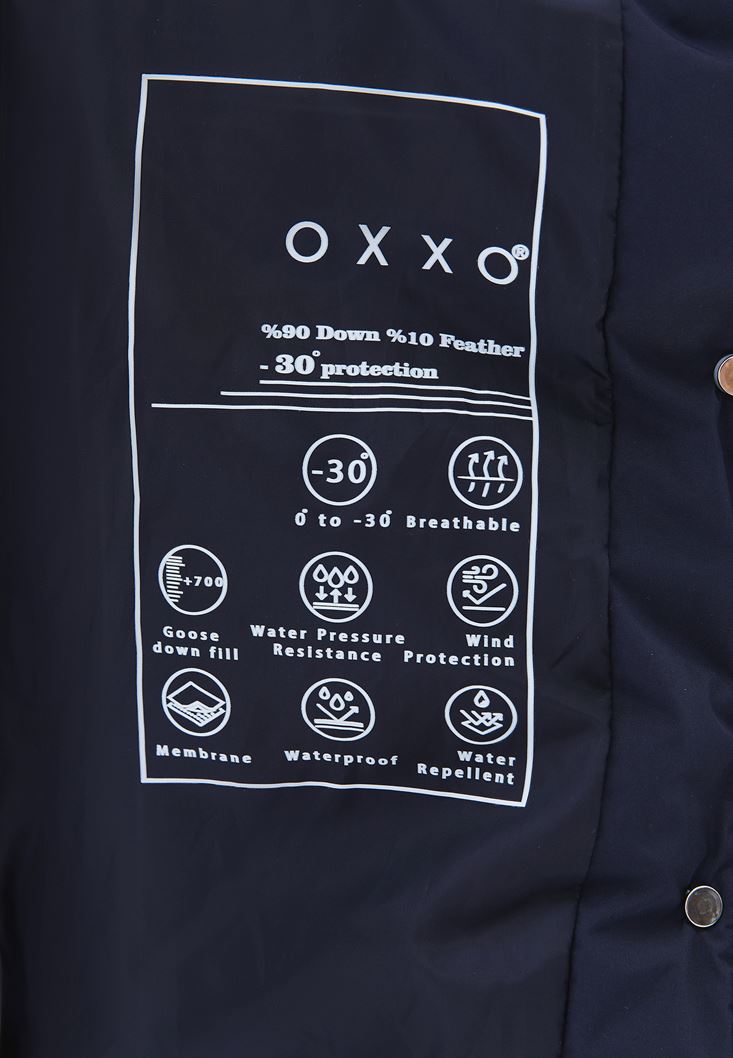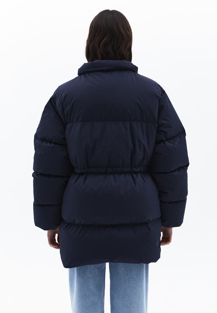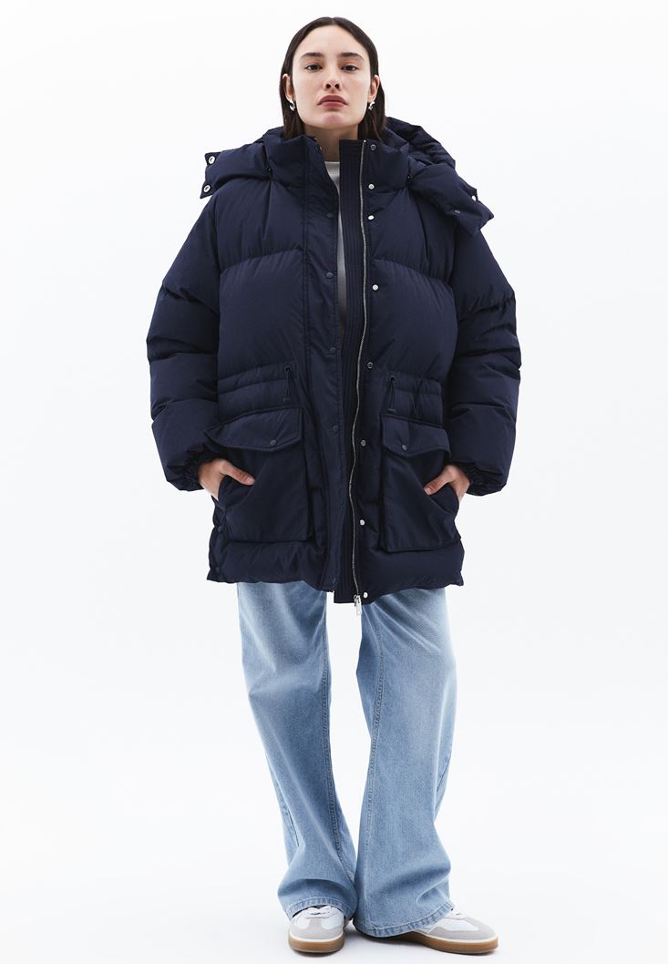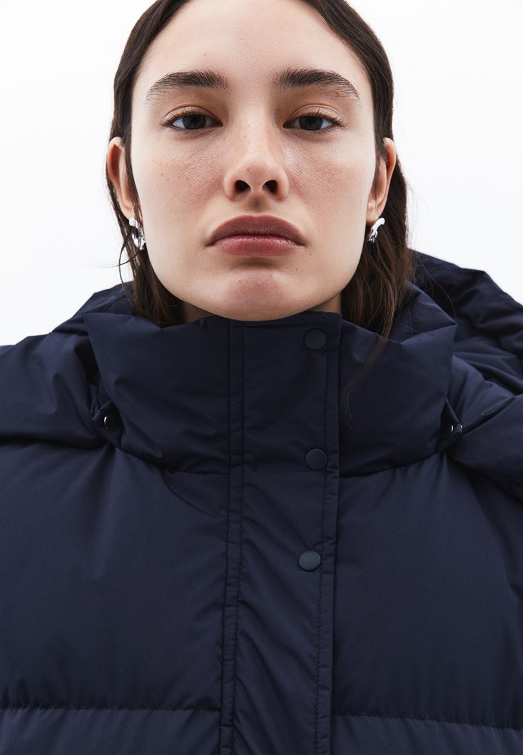 • Bayan Lacivert Kapitoneli Puf Mont