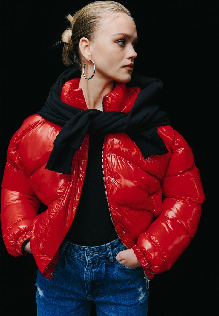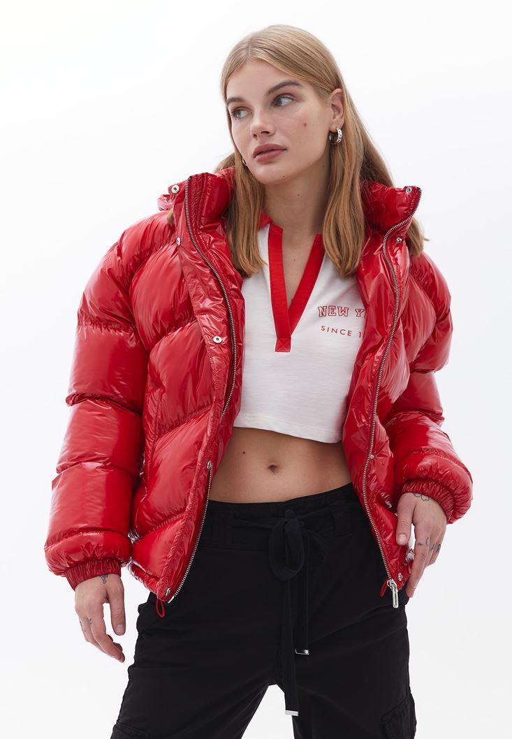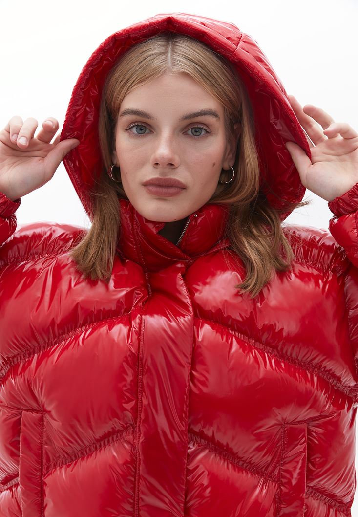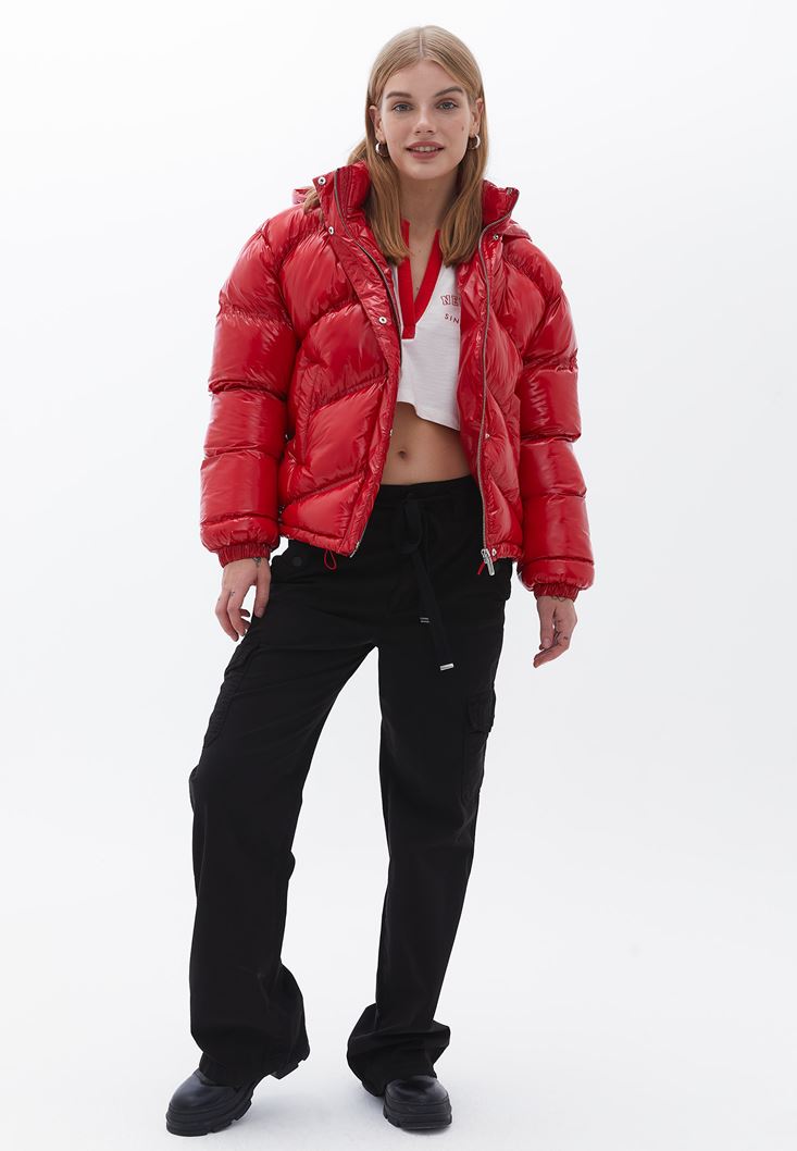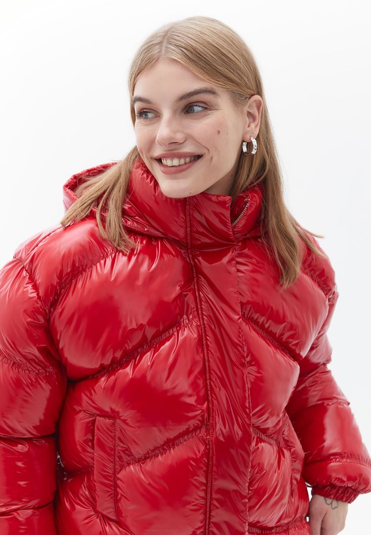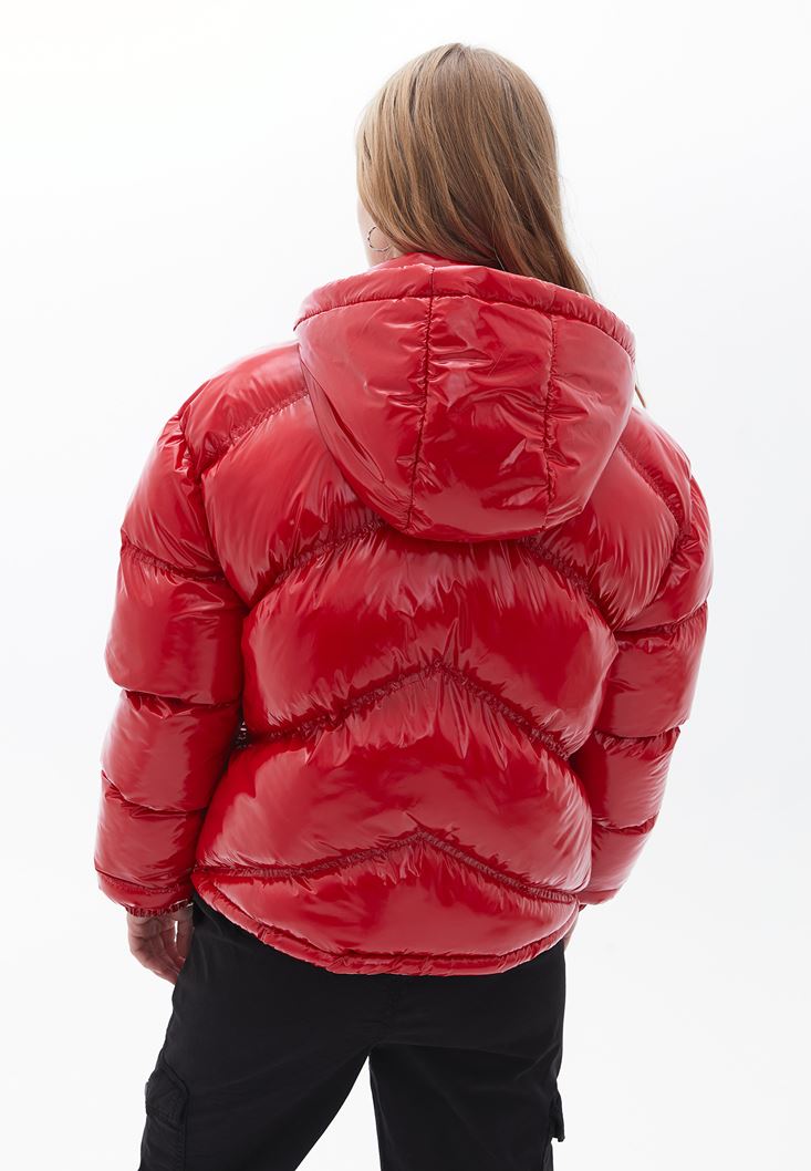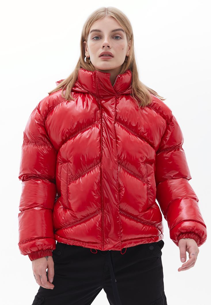 • Bayan Kırmızı Kapitoneli Şişme Mont